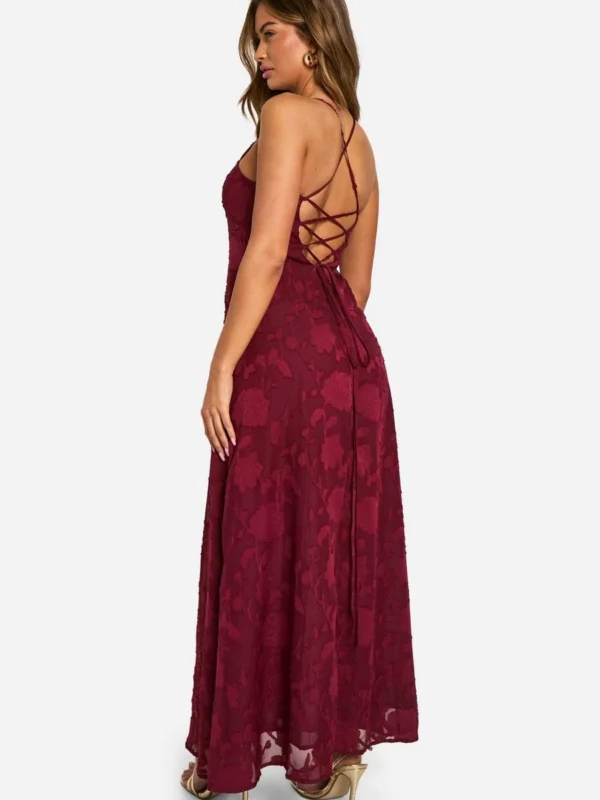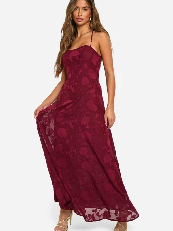 BOOHOO Burnout Floral Tie Back Maxi Dress