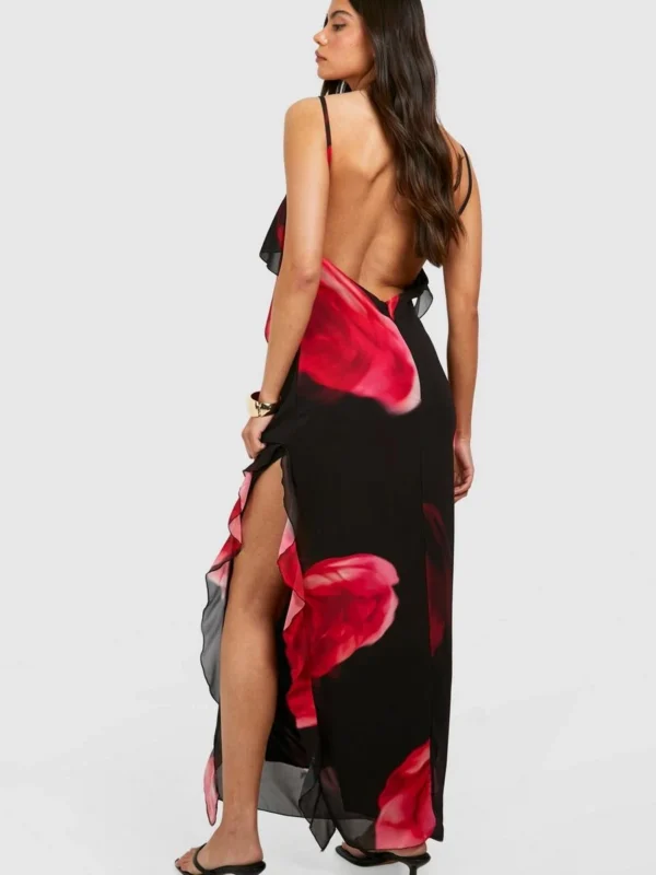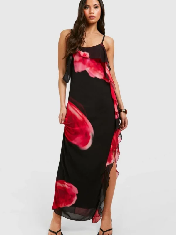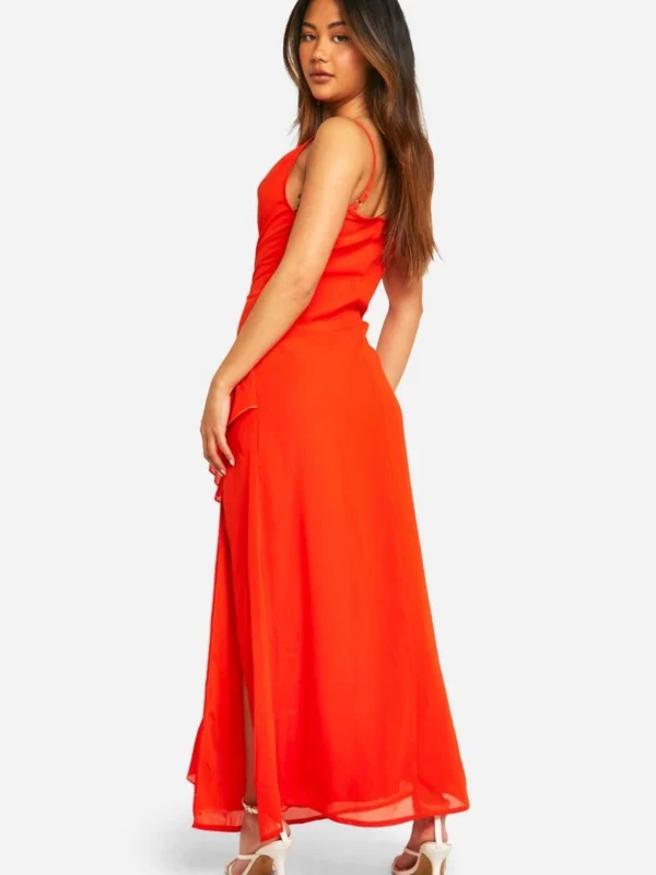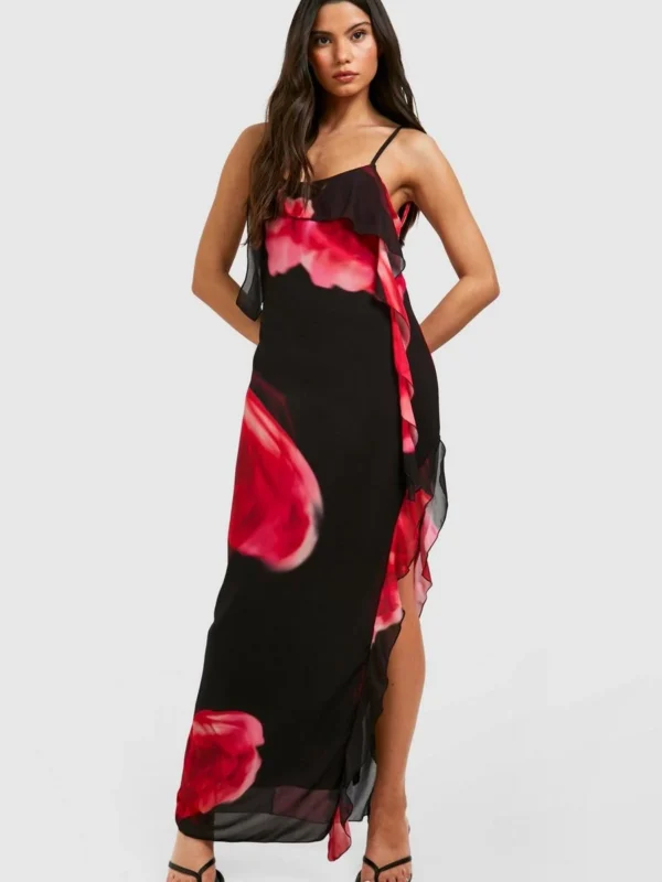 BOOHOO Chiffon High Split Ruffle Maxi Dress