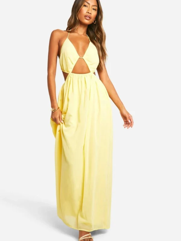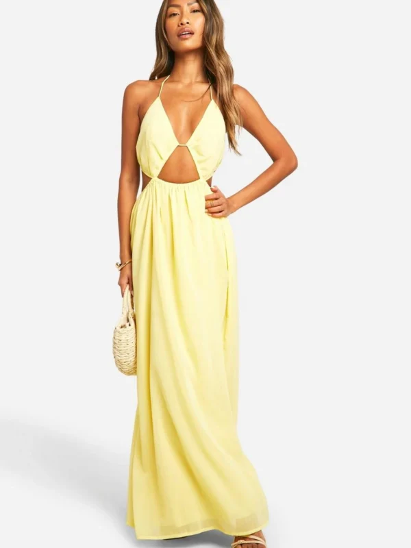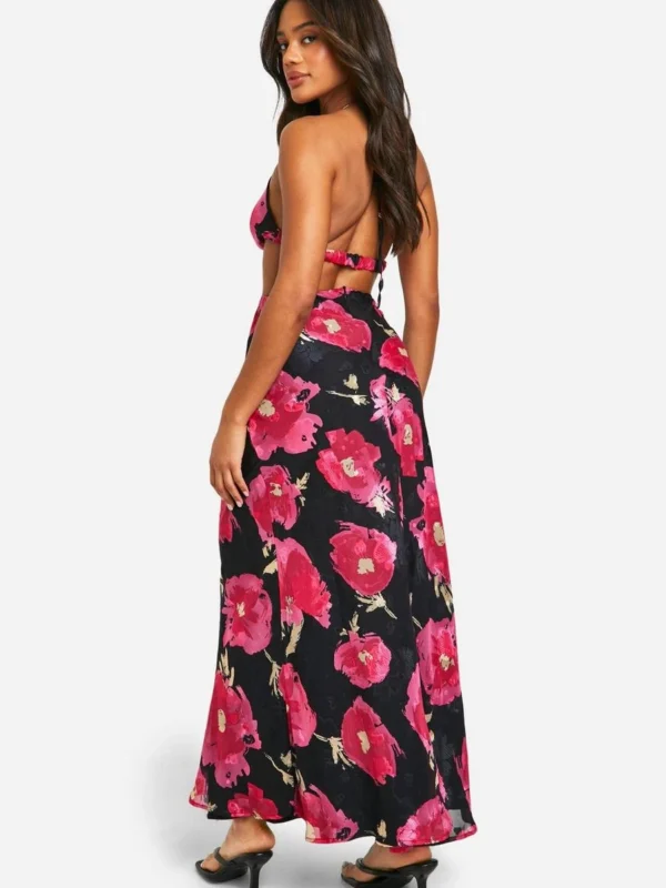 BOOHOO Chiffon Jacquard Floral Cut Out Maxi Dress