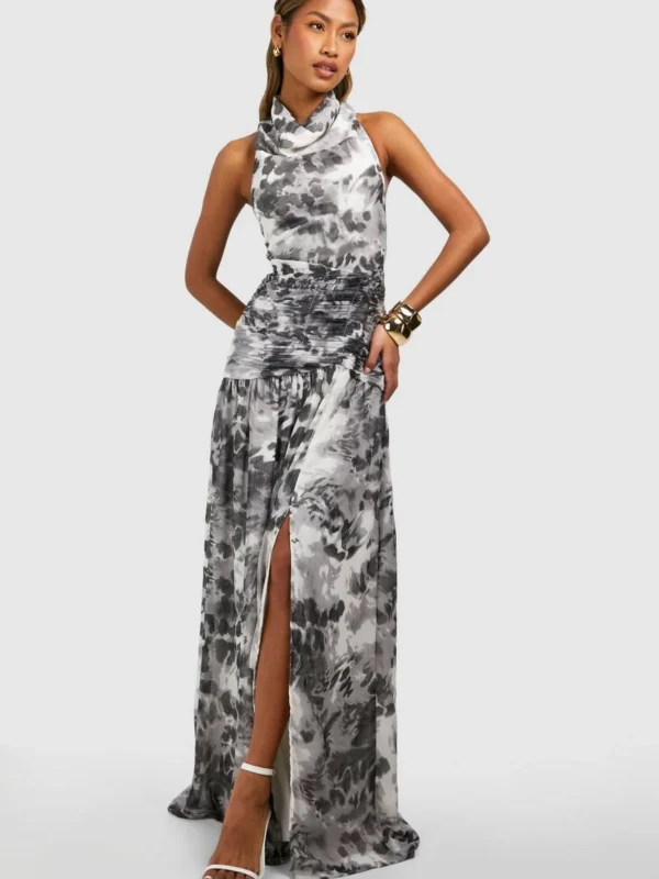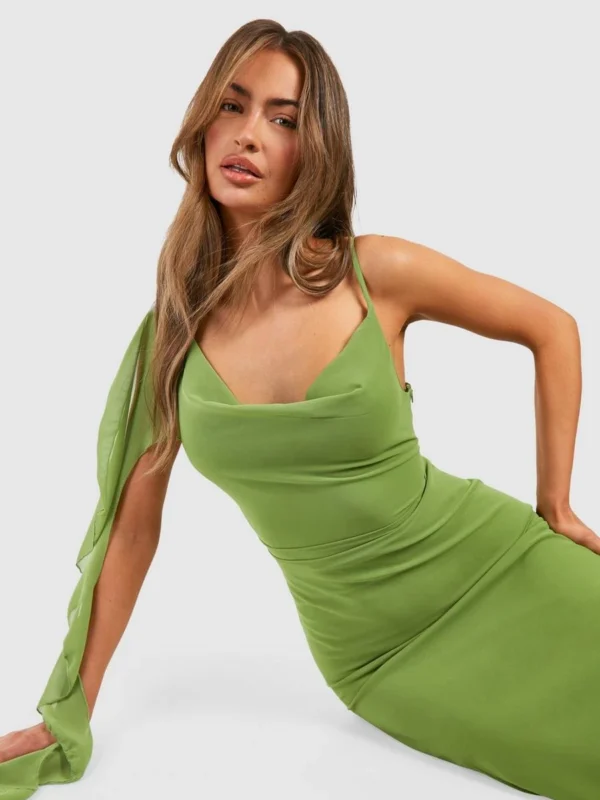 BOOHOO Chiffon Cowl Neck Maxi Dress