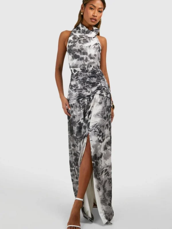 BOOHOO Chiffon Leopard Cowl Maxi Dress