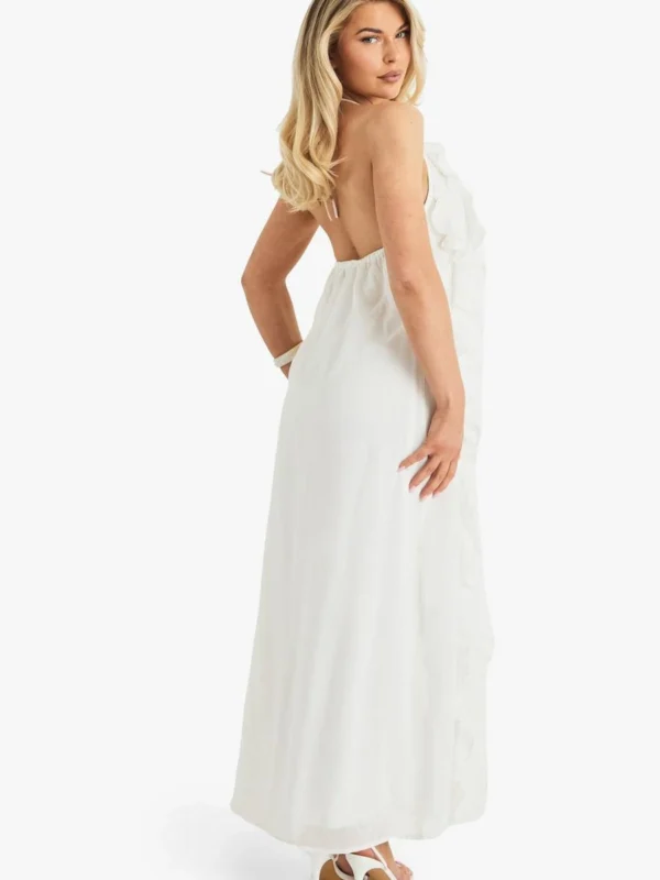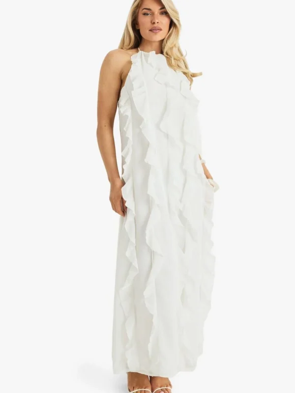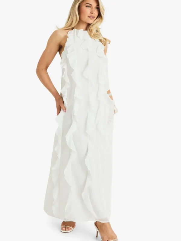 BOOHOO Chiffon Halterneck Ruffle Maxi Dress