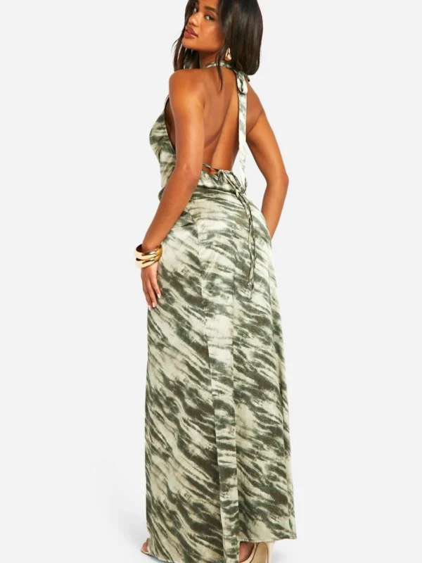 BOOHOO Cowl Neck Satin Diamante Halterneck Maxi Dress