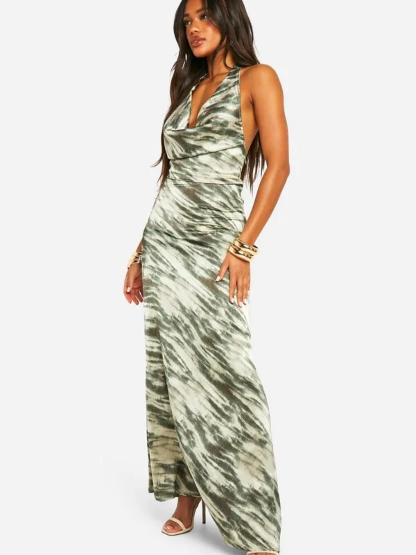 BOOHOO Cowl Neck Scoop Back Maxi Dress