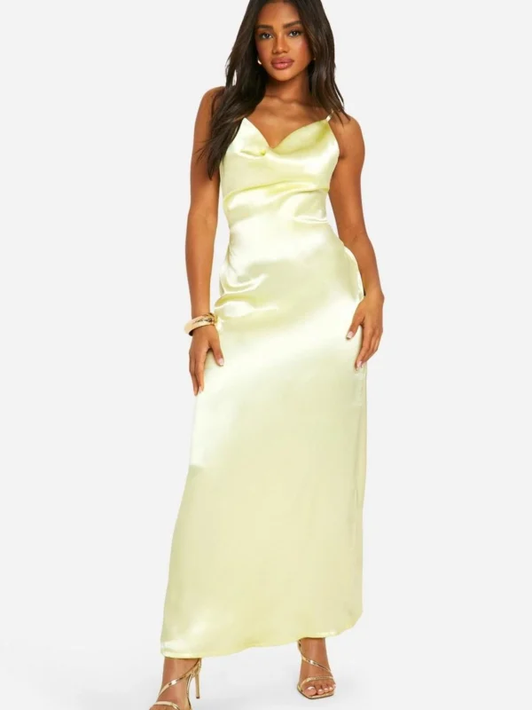 BOOHOO Cowl Neck Satin Slip Maxi Dress