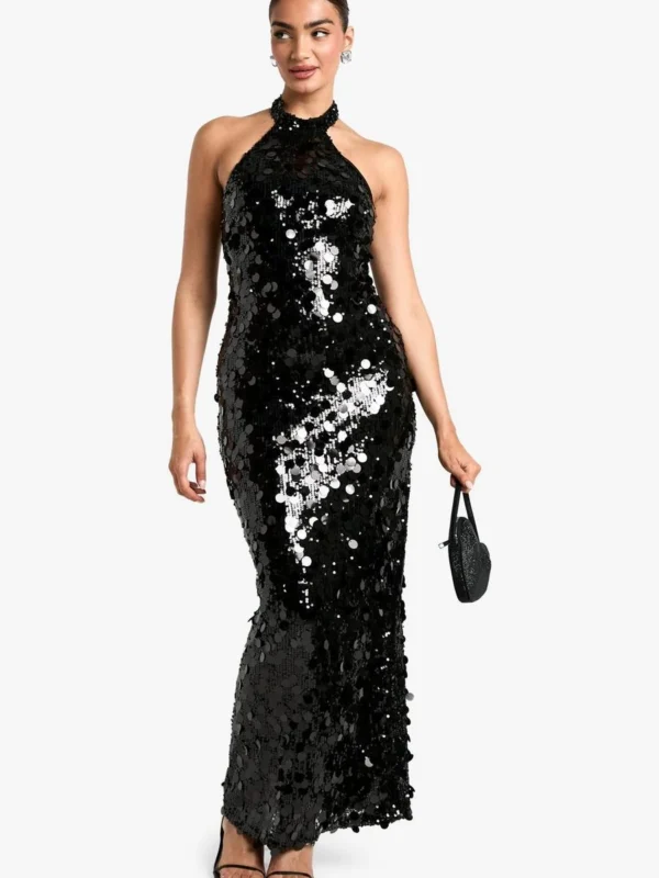 BOOHOO Disc Sequin Halterneck Maxi Dress