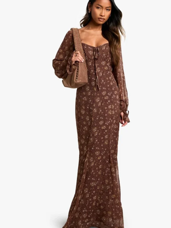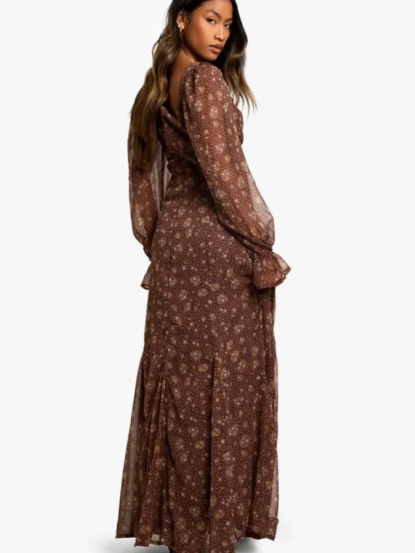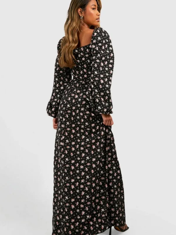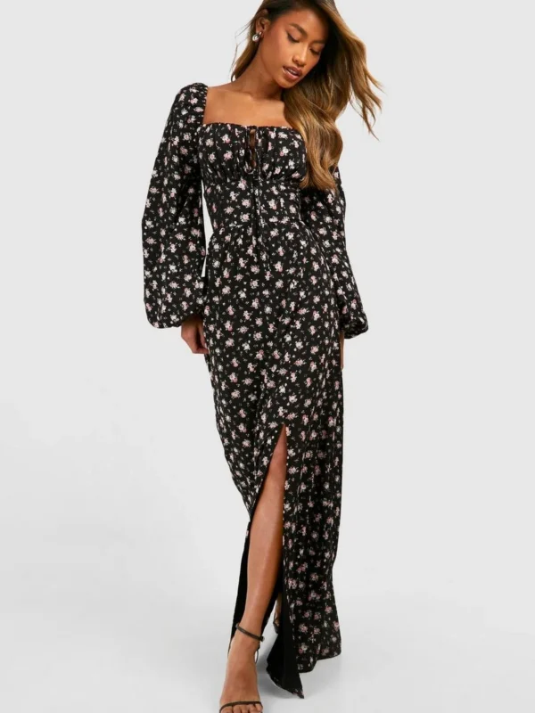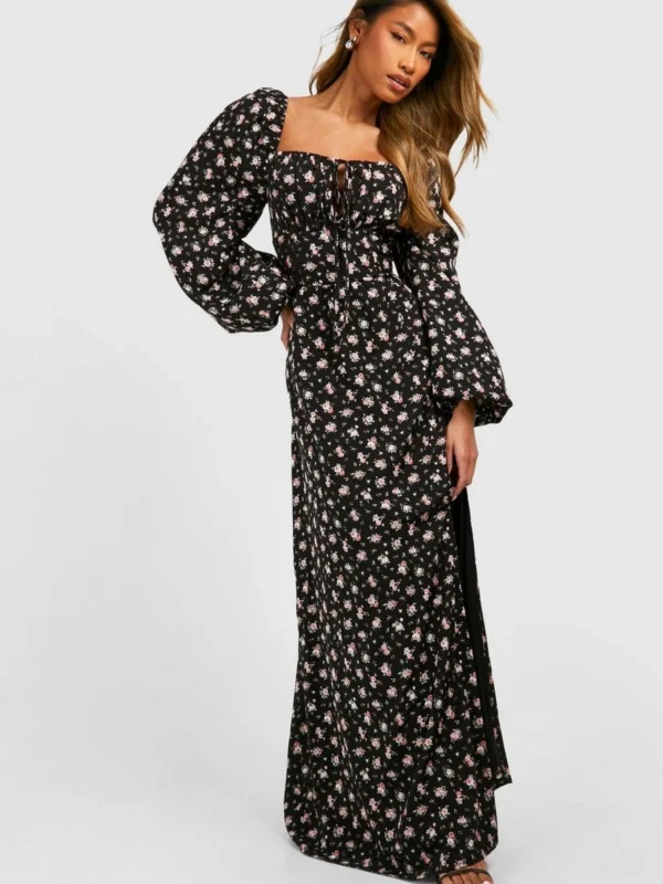 BOOHOO Ditsy Balloon Sleeve Milkmaid Maxi Dress