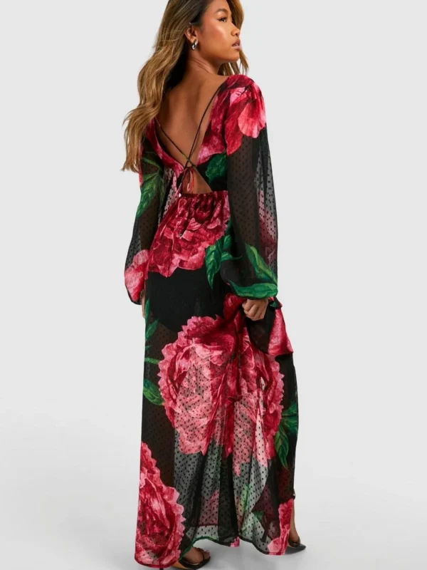 BOOHOO Floral Dobby Floral Frill Maxi Dress