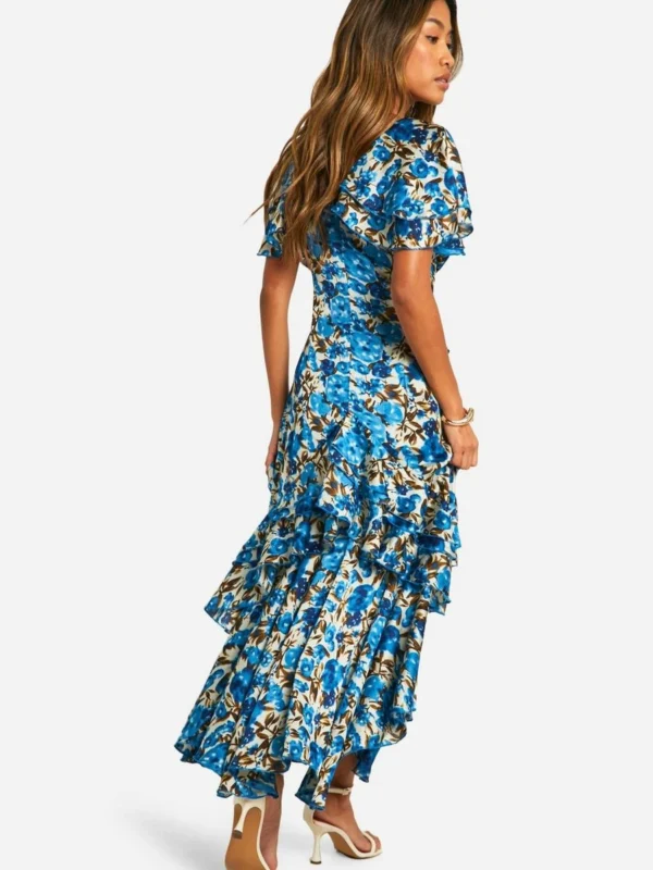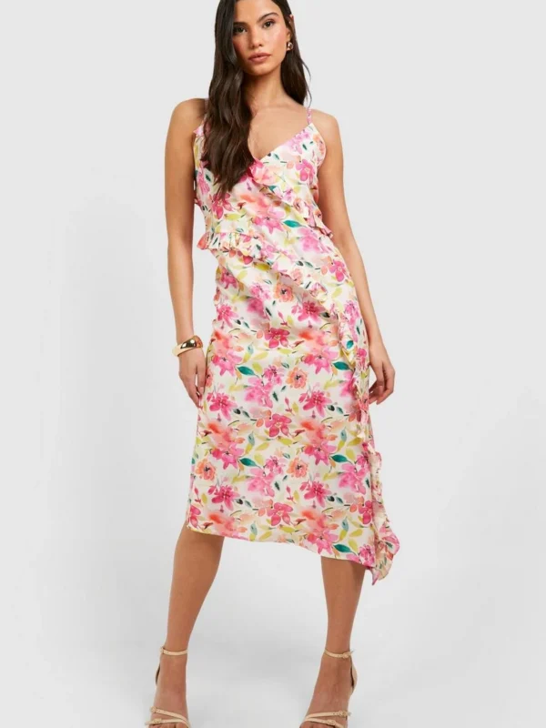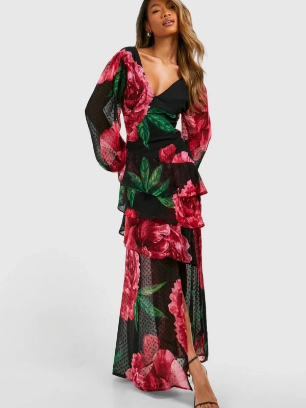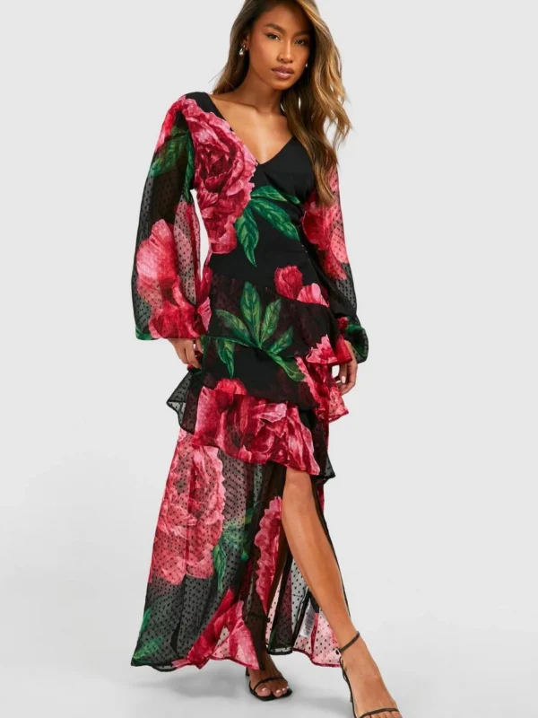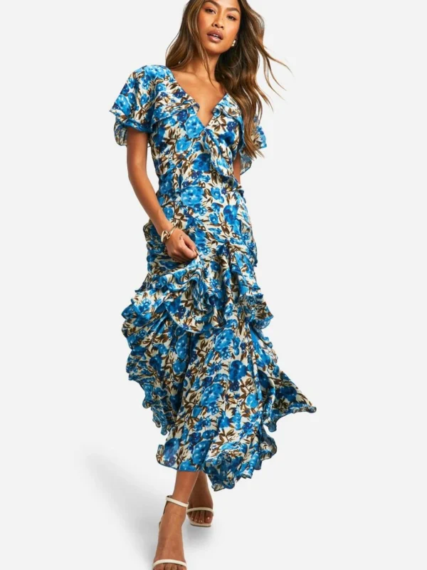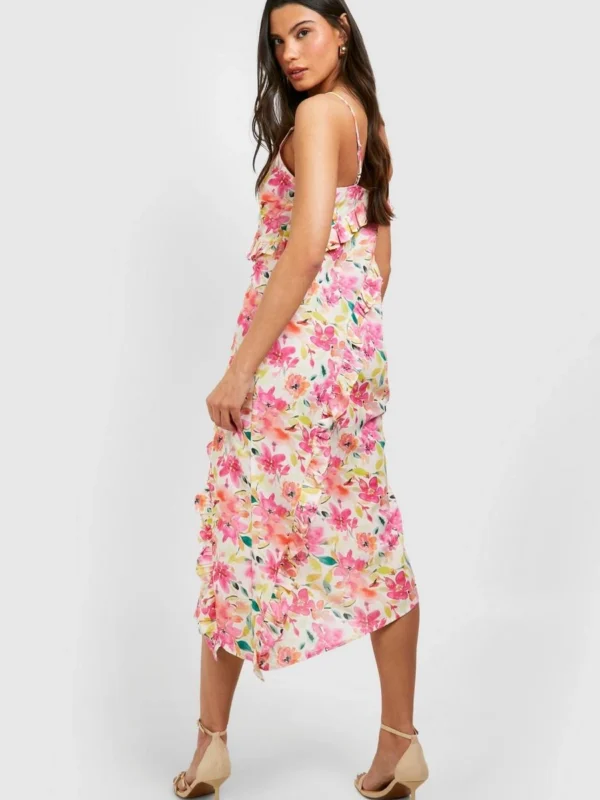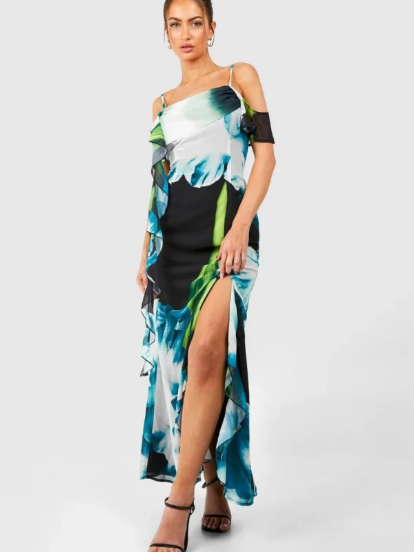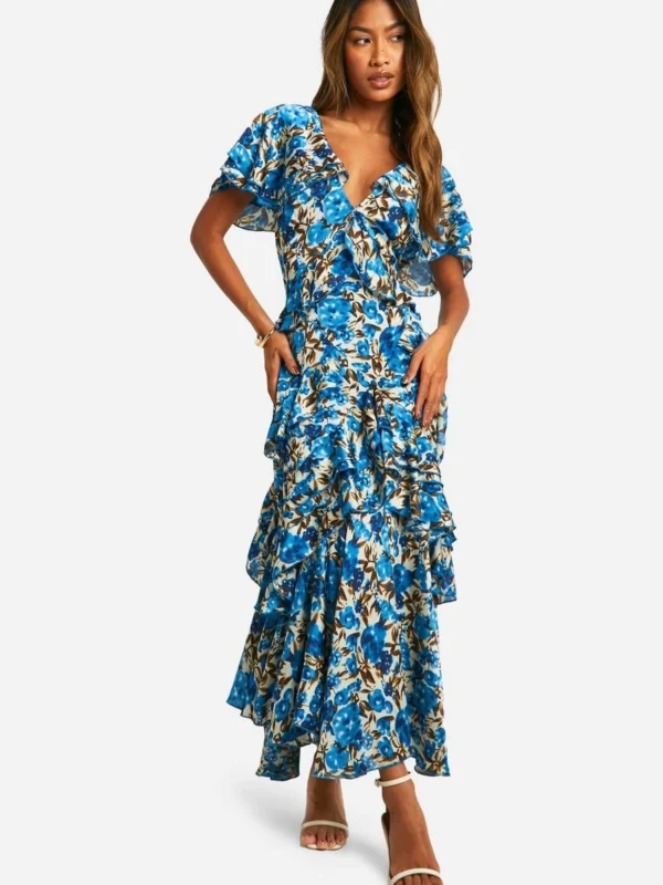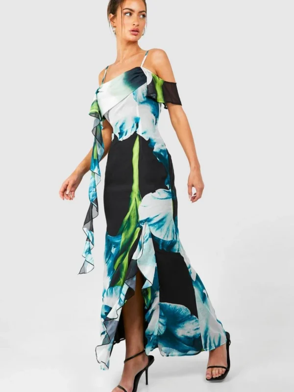 BOOHOO Floral Frill Detail Ruffle Maxi Dress