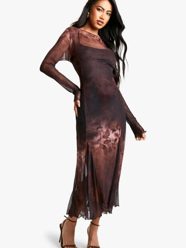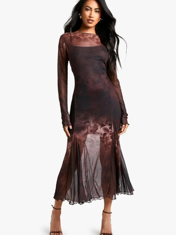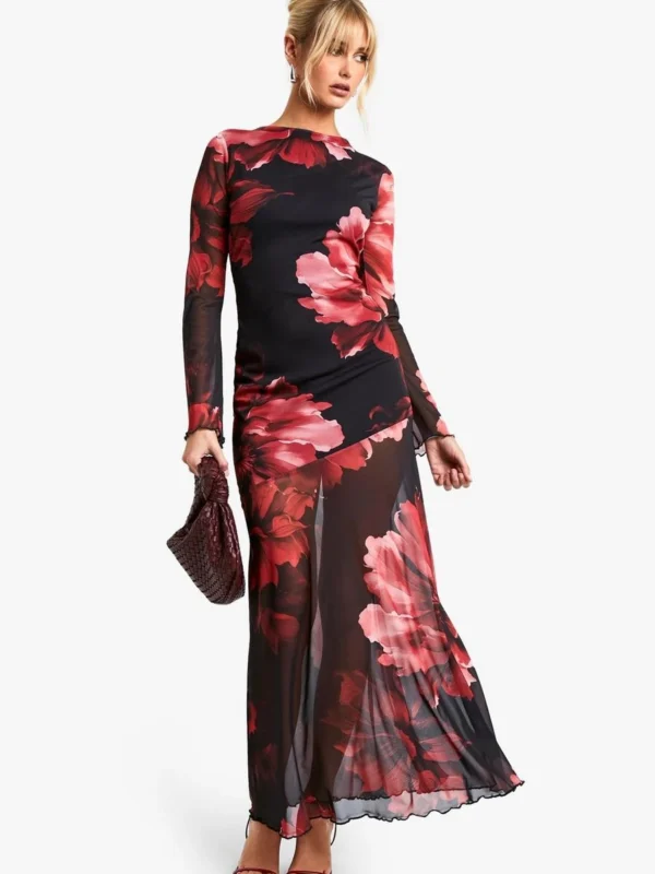 BOOHOO Floral Godet Hem Maxi Dress