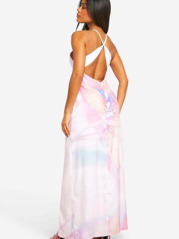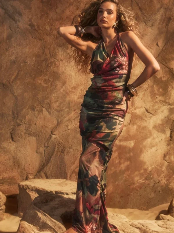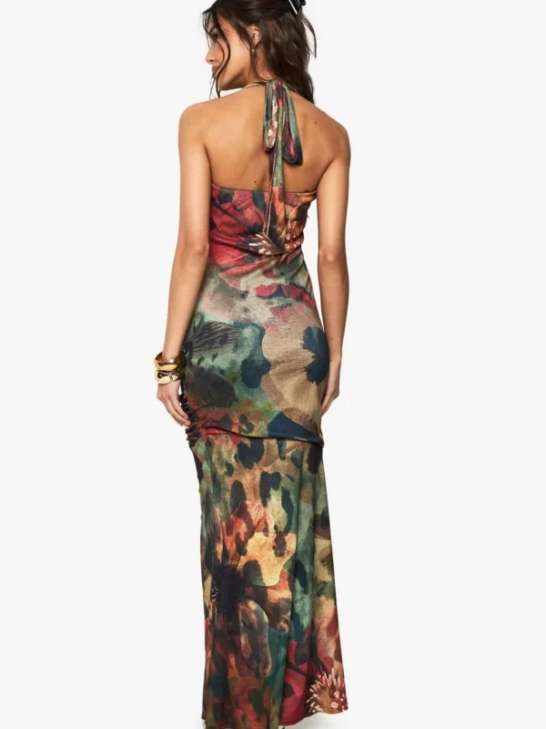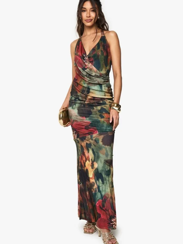 BOOHOO Floral Halterneck Cowl Maxi Dress