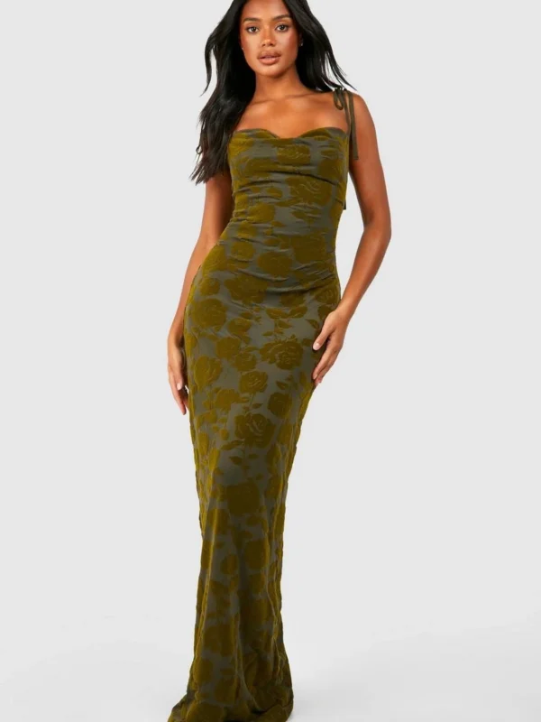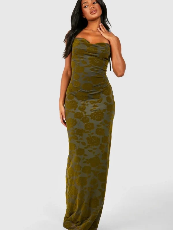 BOOHOO Floral Devore Cowl Maxi Slip Dress