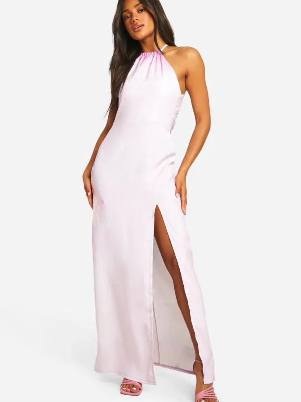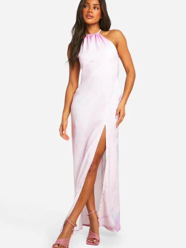 BOOHOO Floral Halter Split Leg Maxi Dress