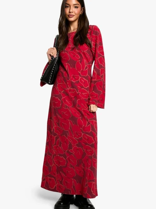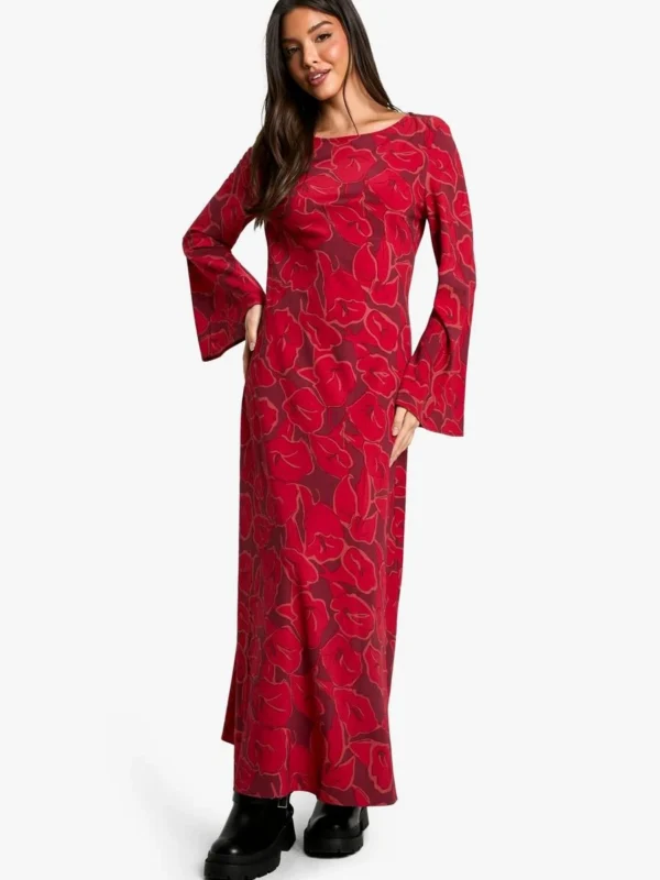 BOOHOO Floral Flare Sleeve Maxi Dress