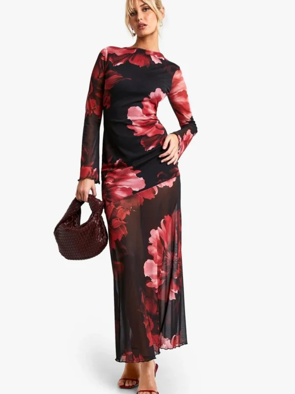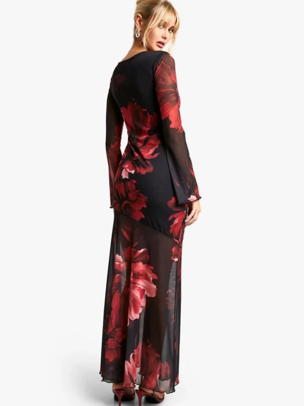 BOOHOO Floral Draped Sleeve Maxi Dress