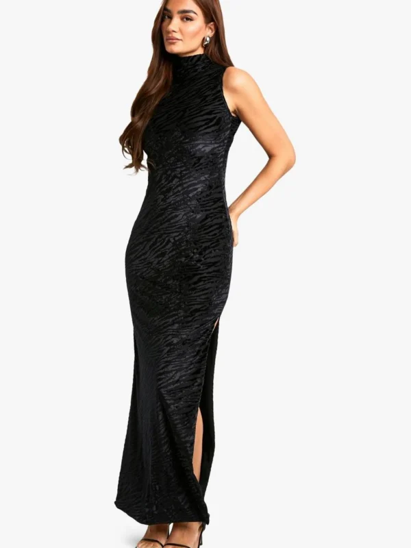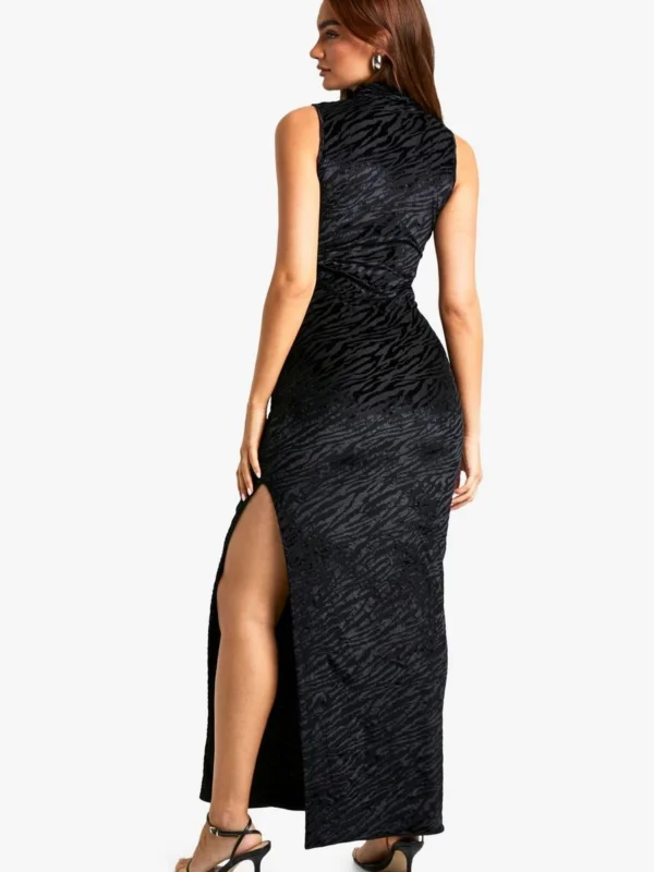 BOOHOO Devore High Neck Cut Out Detail Maxi Dress