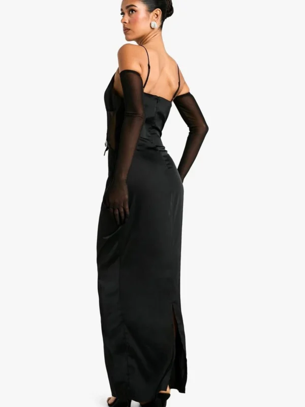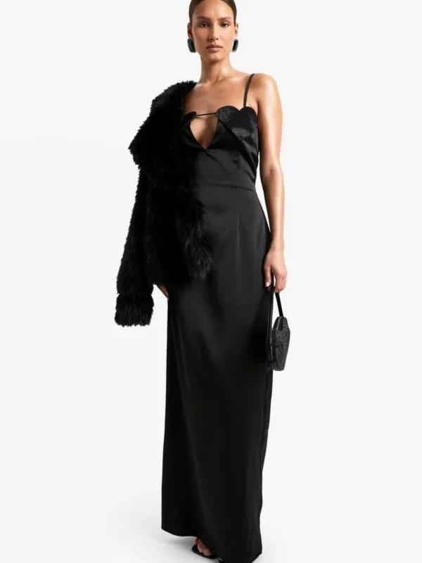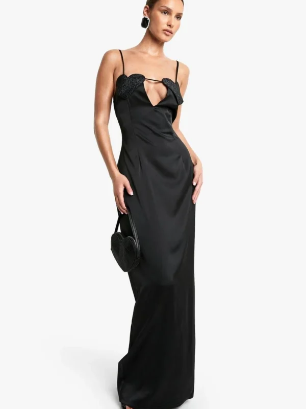 BOOHOO Diamante Heart Satin Maxi Dress