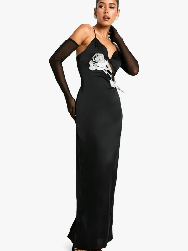 BOOHOO Diamante Flower Maxi Dress