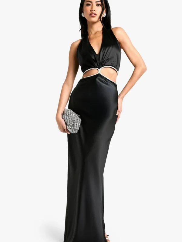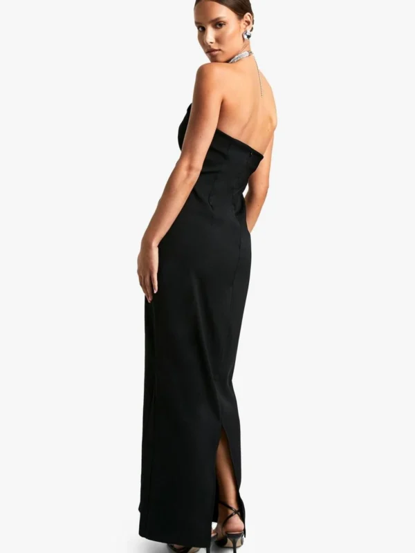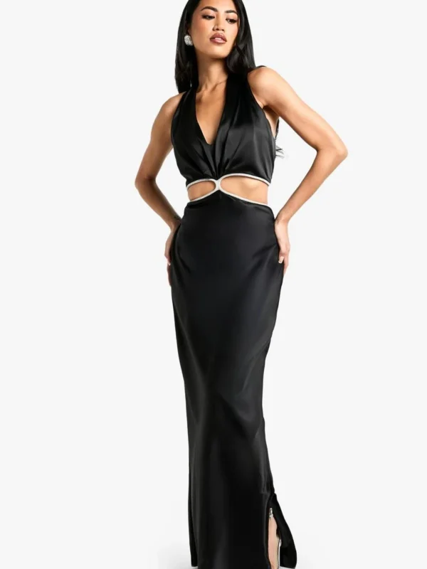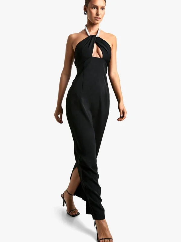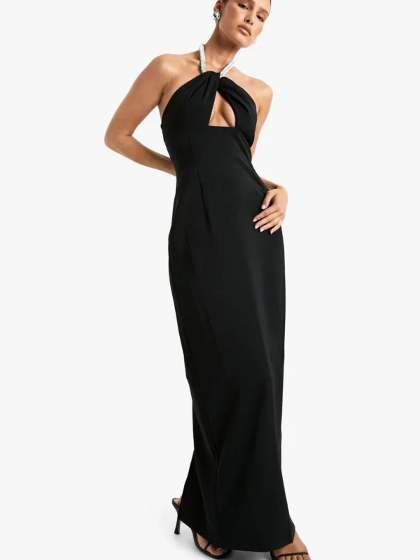 BOOHOO Diamante Trim Halterneck Maxi Dress