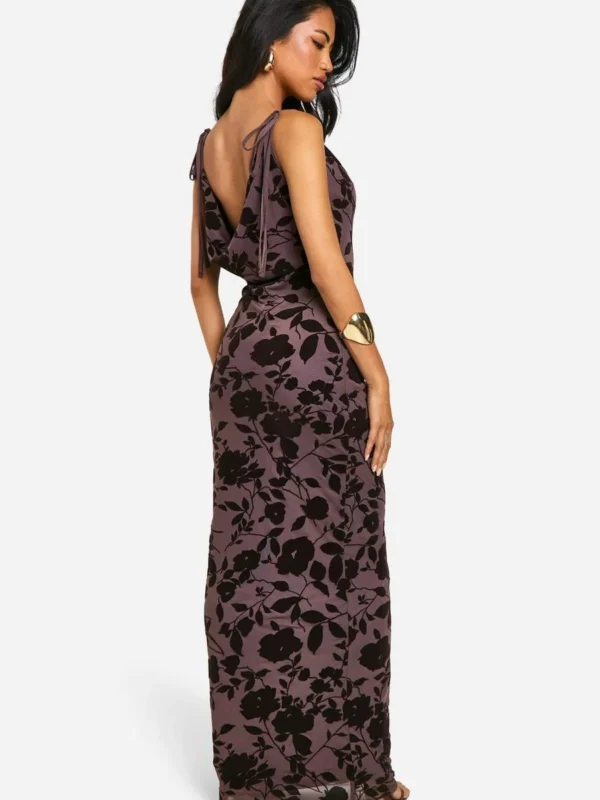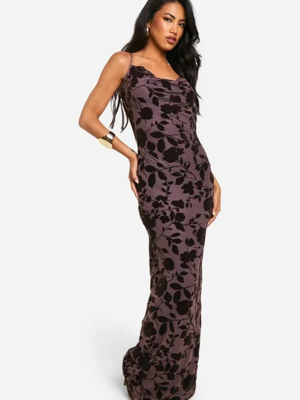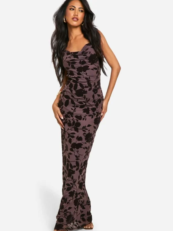 BOOHOO Devore Floral Cowl Neck Maxi Dress