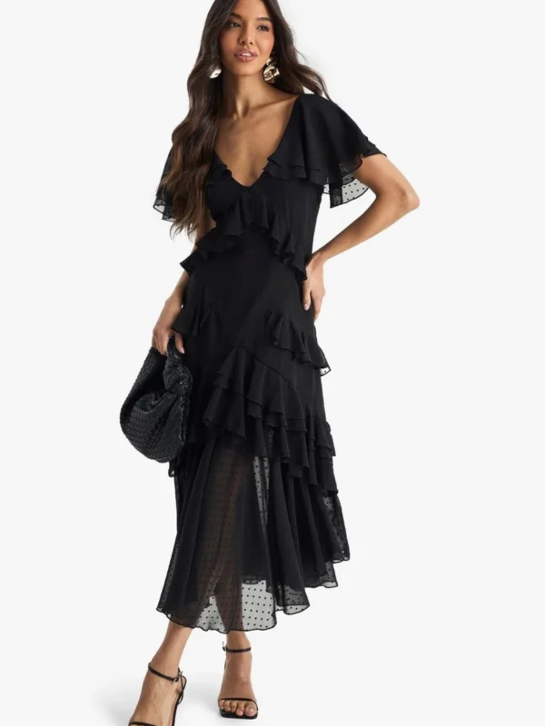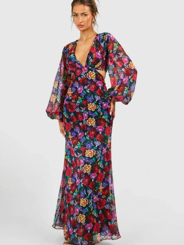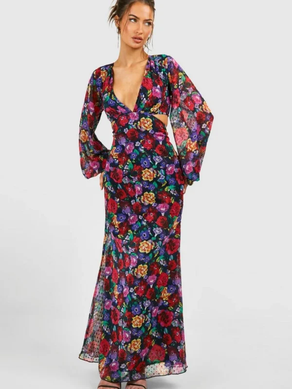 BOOHOO Dobby Floral Cut Out Maxi Dress