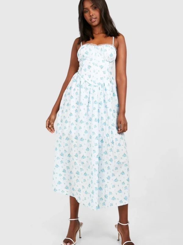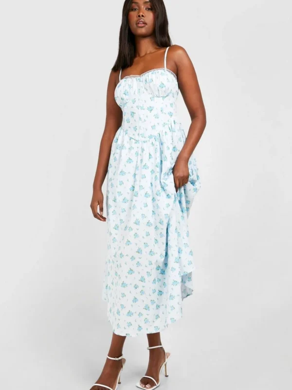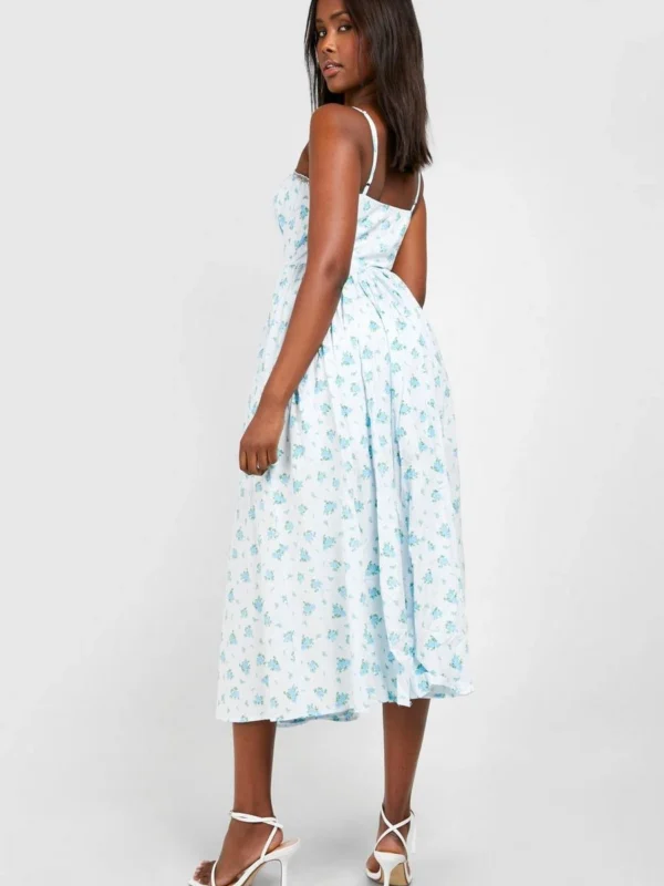 BOOHOO Ditsy Floral Strappy Milkmaid Midaxi Dress