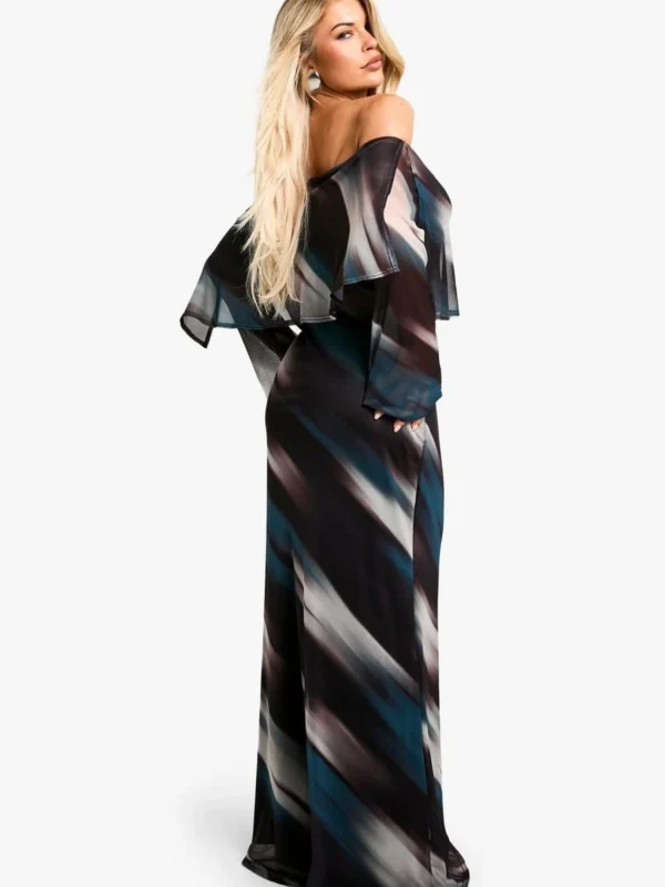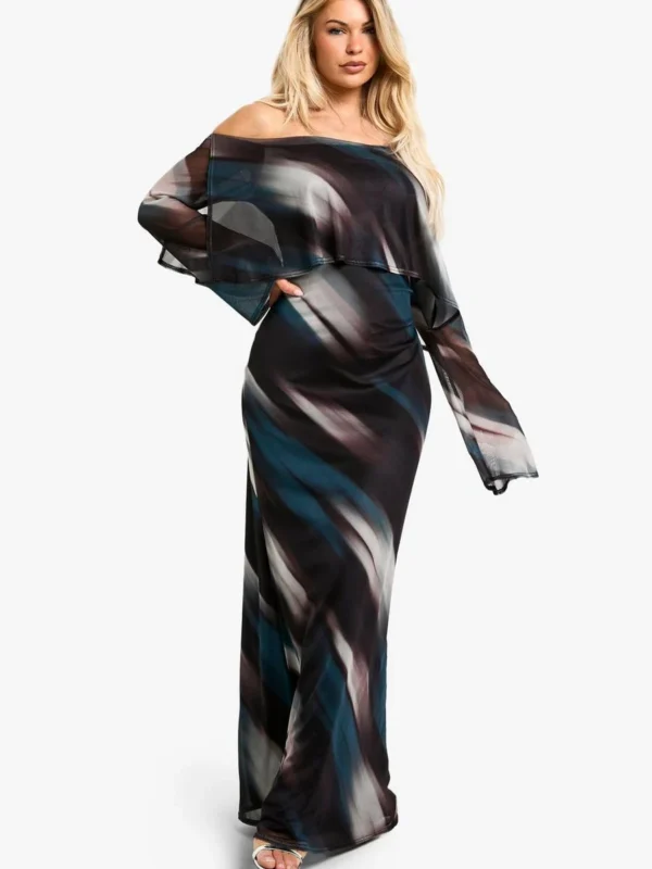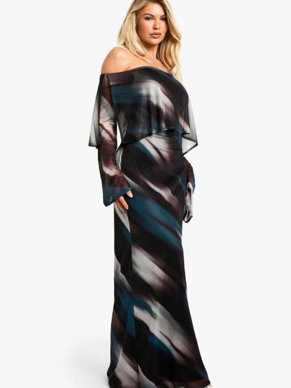 BOOHOO Drape Abstract Printed Mesh Maxi Dress