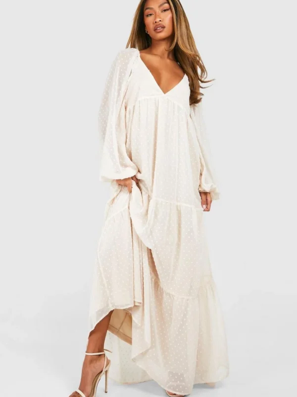BOOHOO Ditsy Balloon Sleeve Milkmaid Maxi Dress