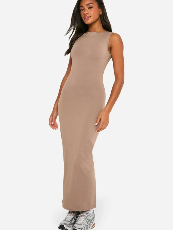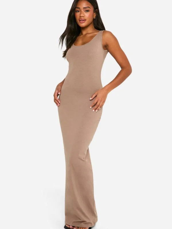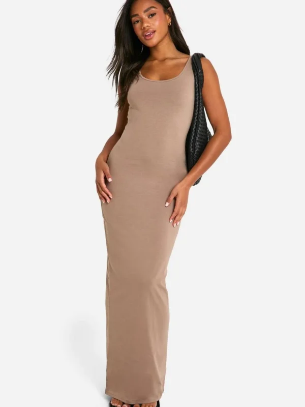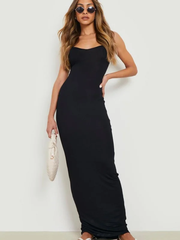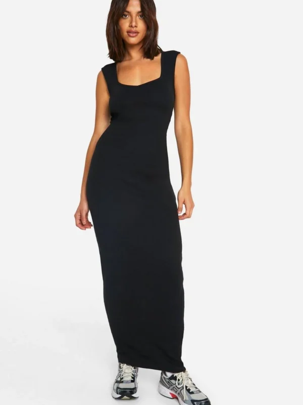 BOOHOO Basic Rib Sweetheart Neck Maxi Dress