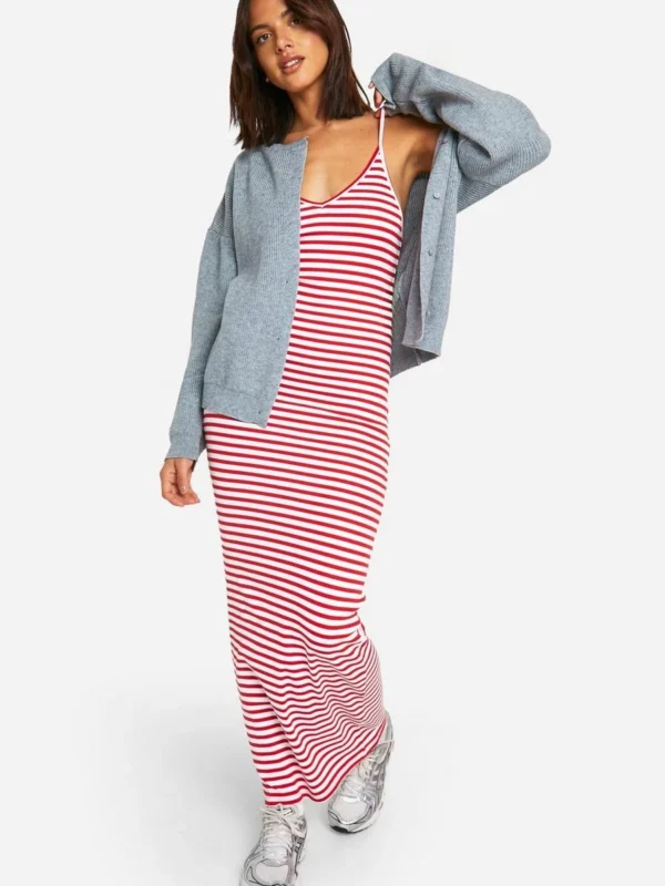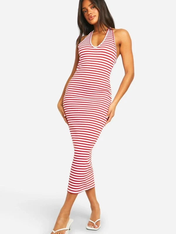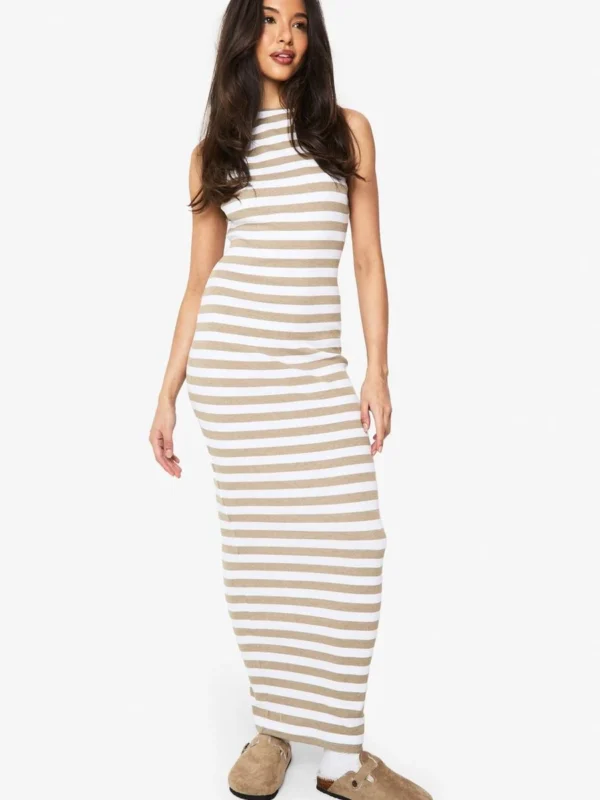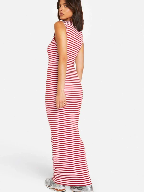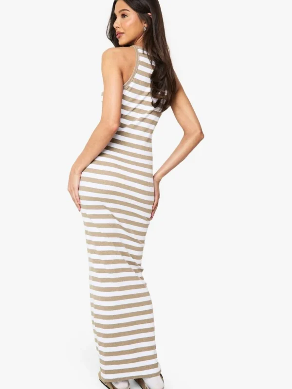 BOOHOO Basic Stripe Rib Racer Neck Maxi