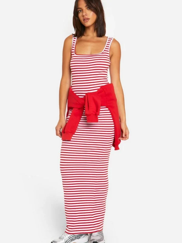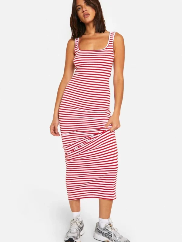 BOOHOO Basic Rib Stripe Square Neck Maxi