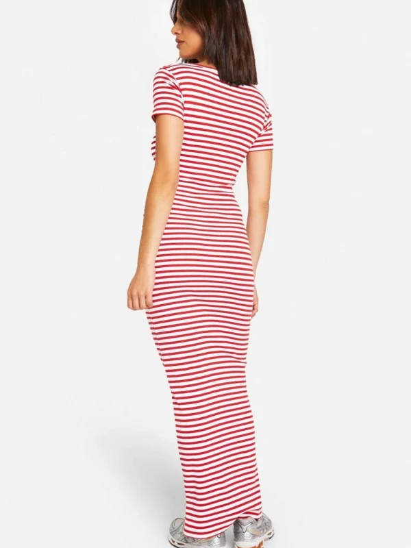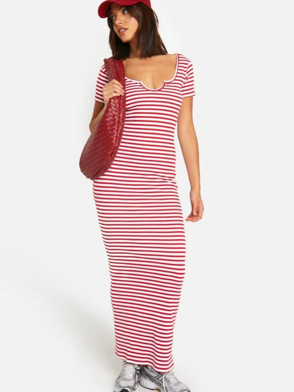 BOOHOO Basic Stripe Rib Notch Maxi Dress