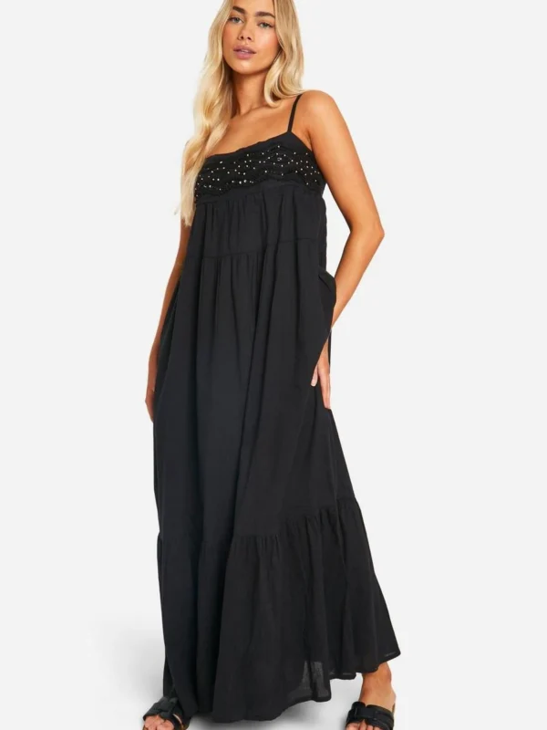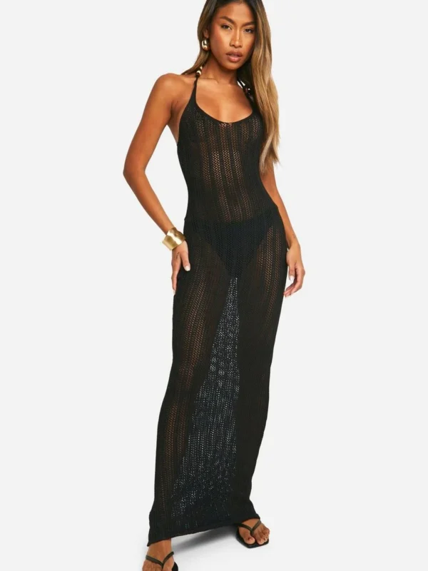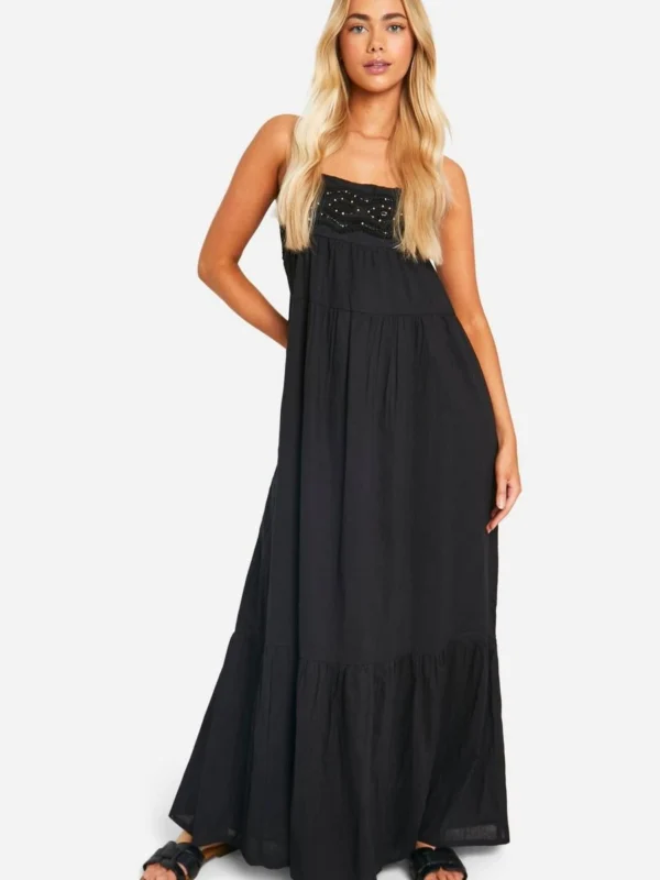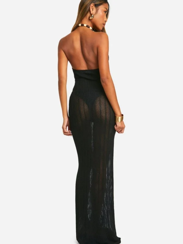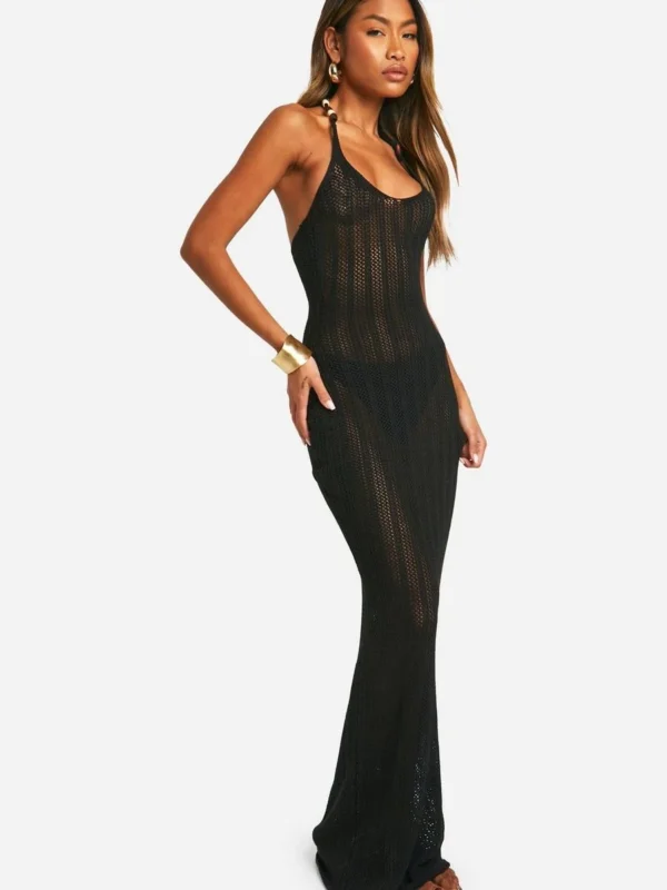 BOOHOO Bead Strap Detail Crochet Maxi Dress