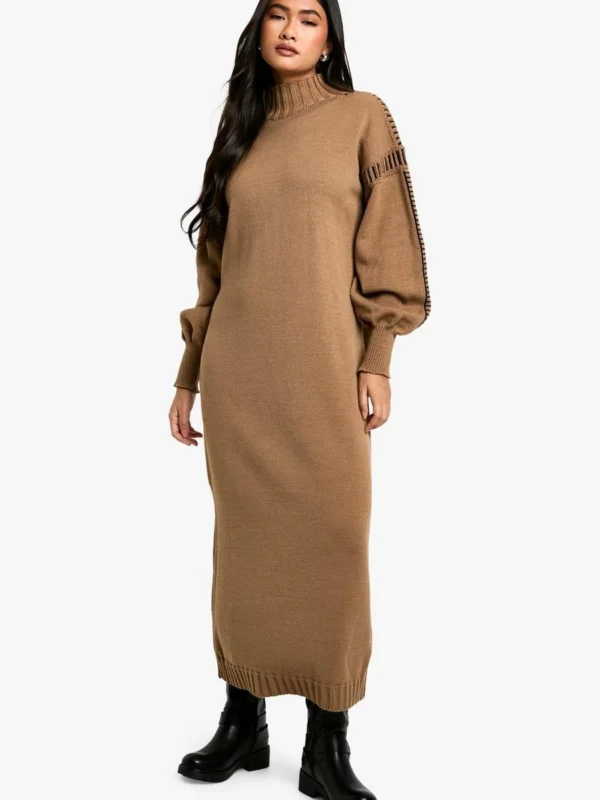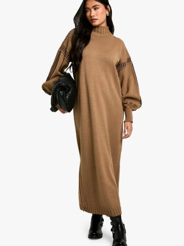 BOOHOO Blanket Stitch Detail Oversized Knitted Maxi Dress