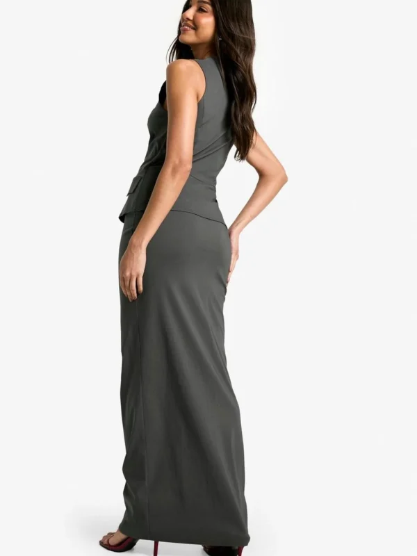 BOOHOO Bengaline Plunge Waistcoat Maxi Dress