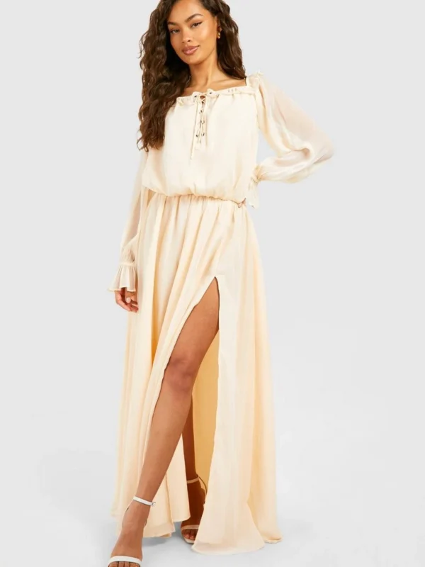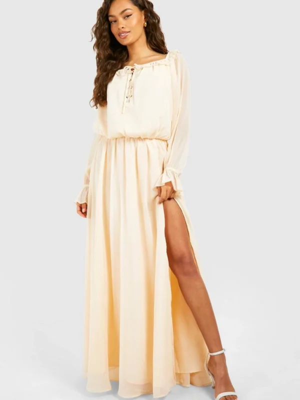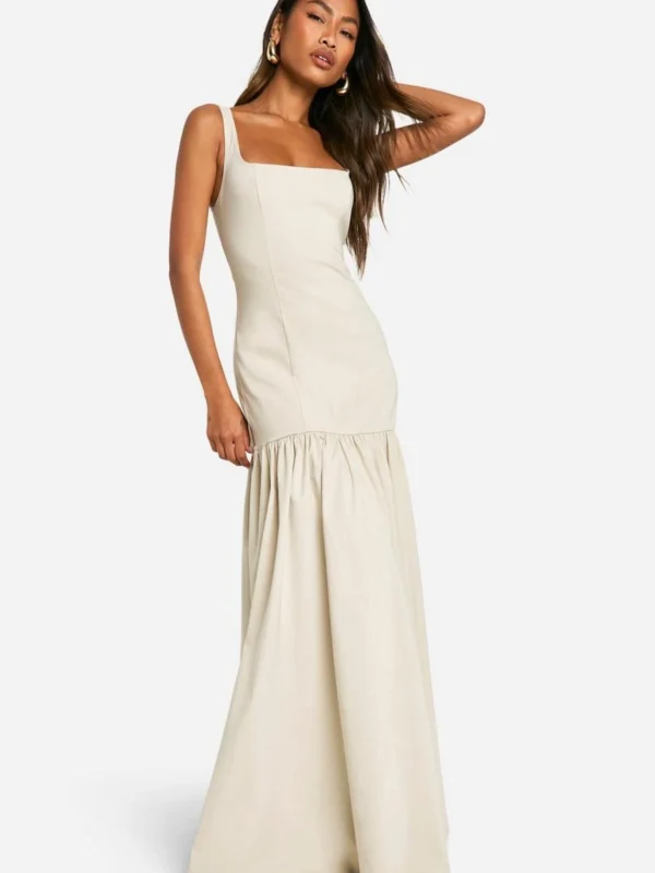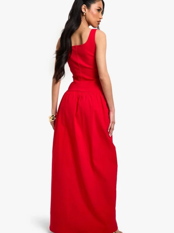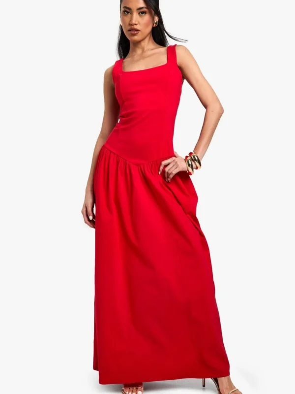 BOOHOO Bengaline Square Neck Dropped Waist Maxi Dress