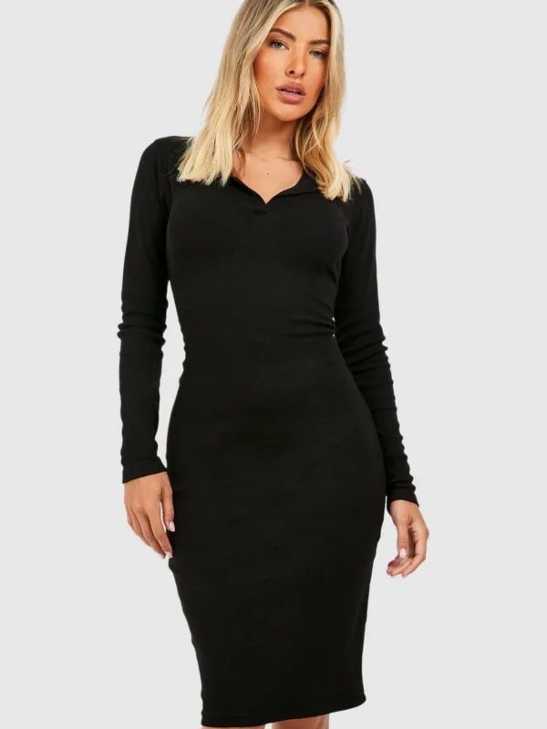 BOOHOO Collared Long Sleeve Midi Dress
