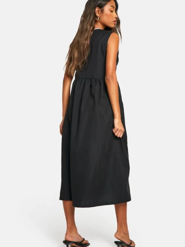 BOOHOO Contrast Shirred Waist Midi Dress