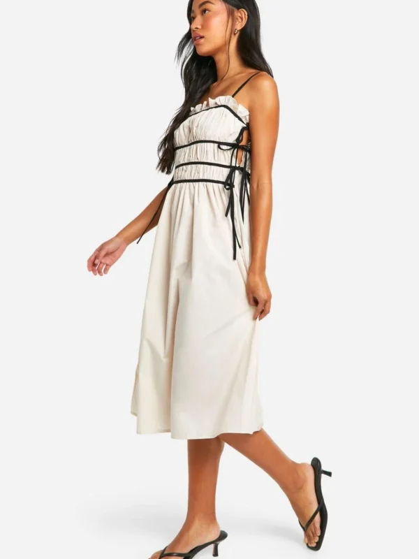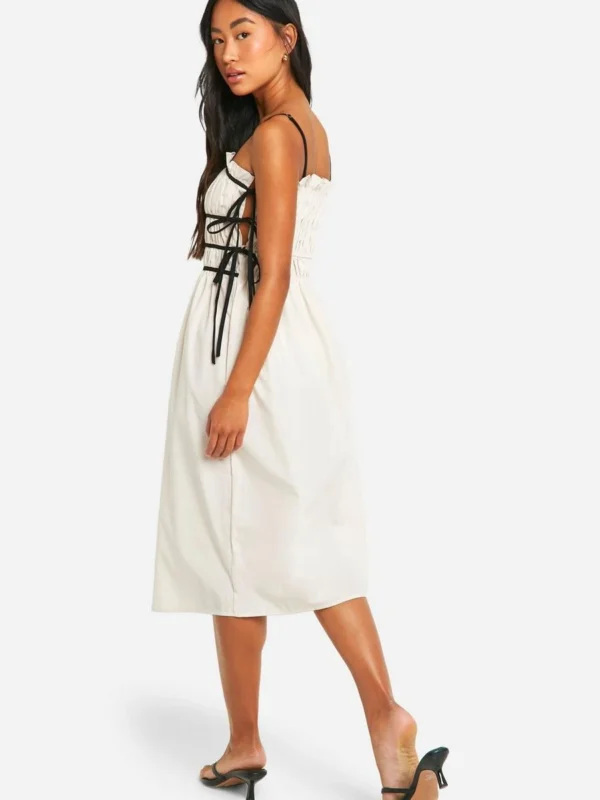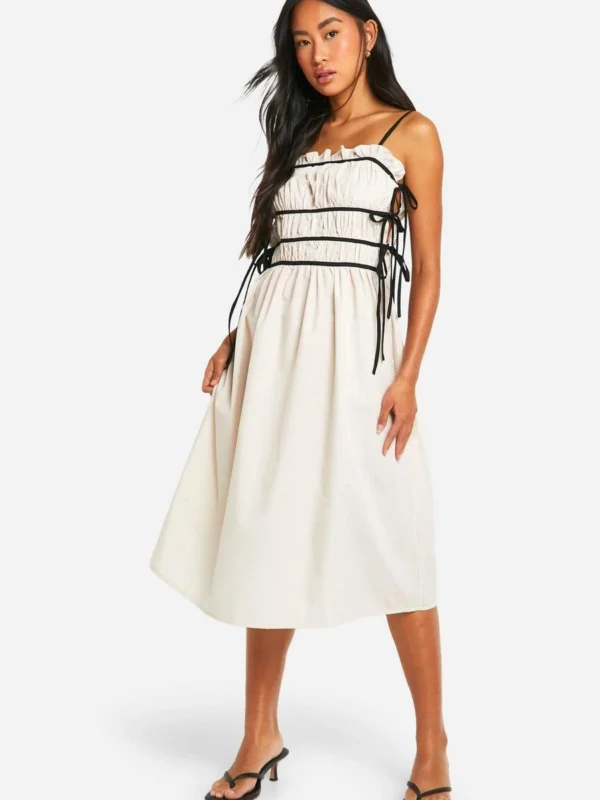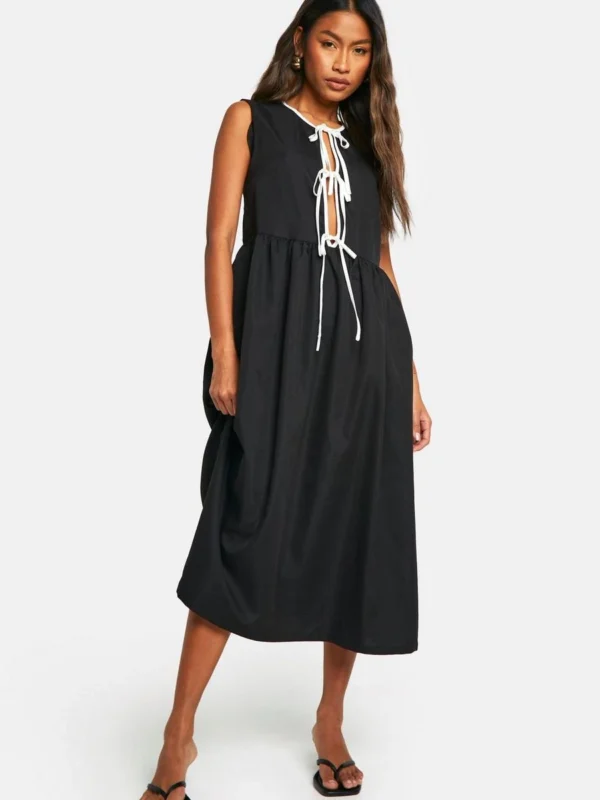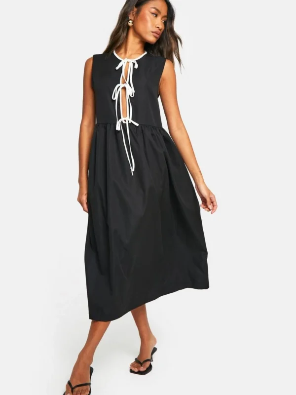 BOOHOO Contrast Tie Front Woven Midi Dress