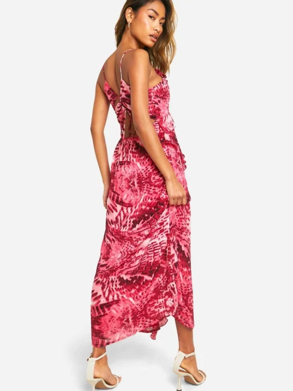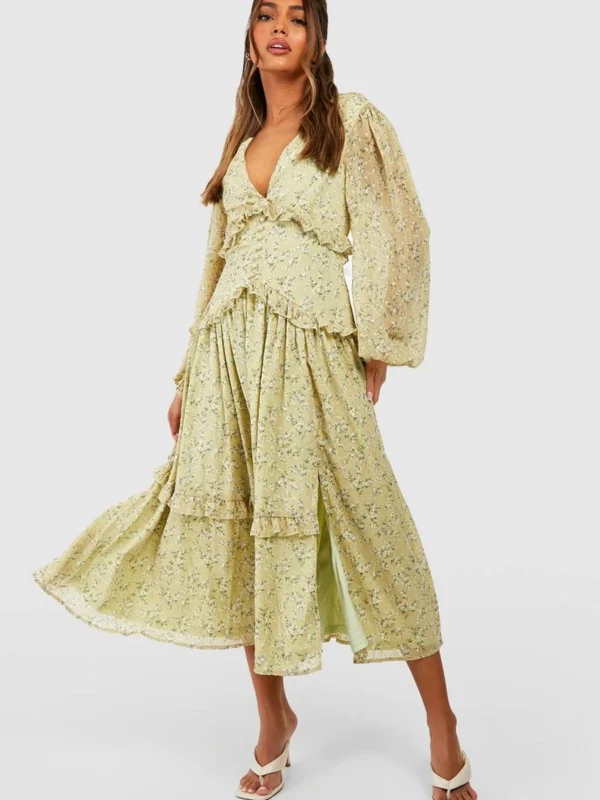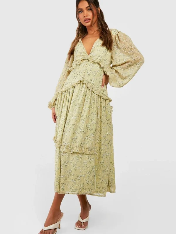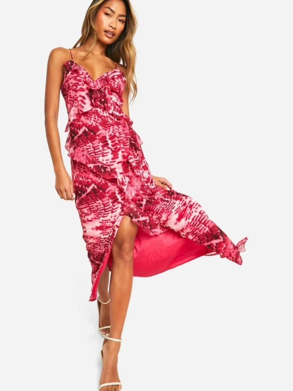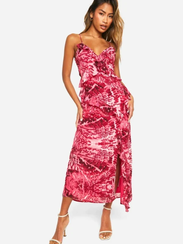 BOOHOO Blur Print Chiffon Ruffle Midi Dress
