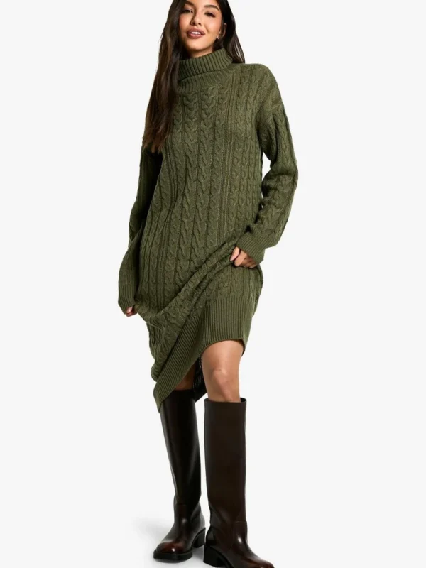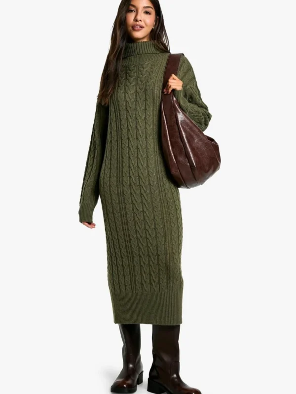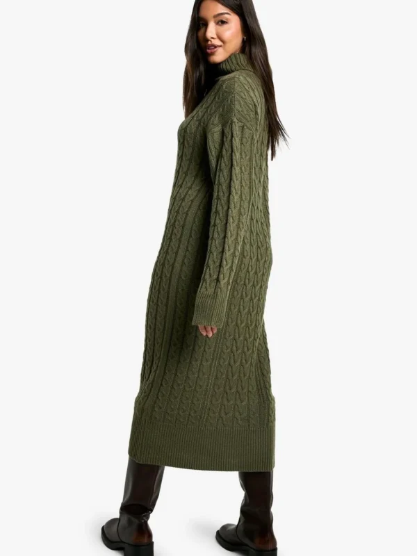 BOOHOO Cable Knit Roll Neck Midi Dress