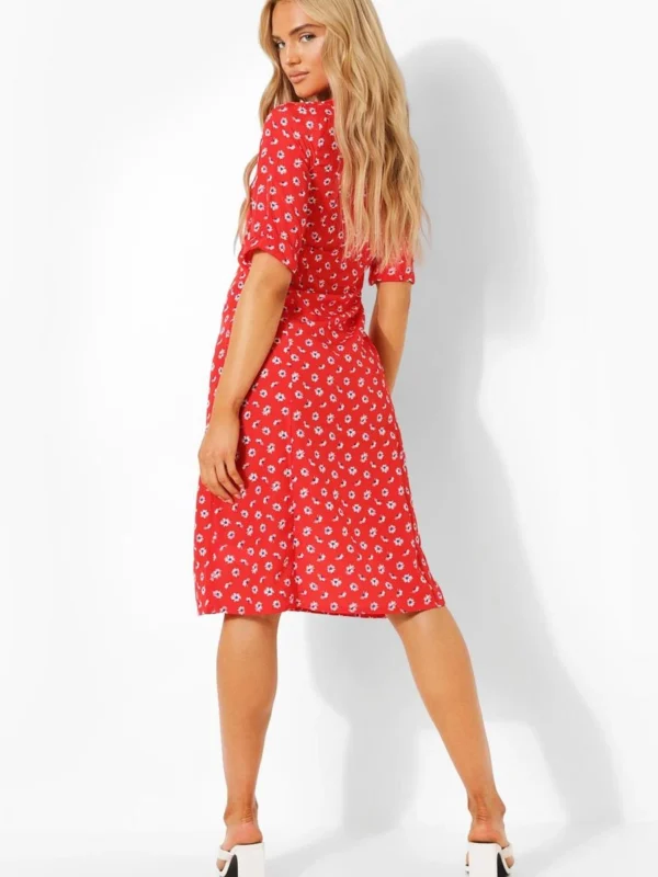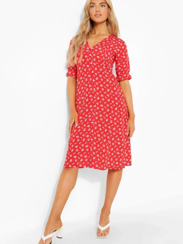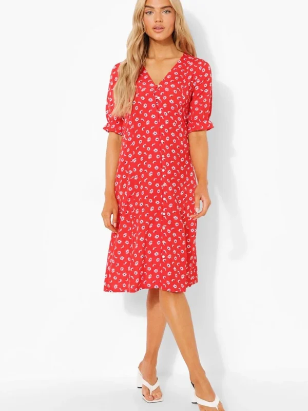BOOHOO Daisy Button Through Midi Dress