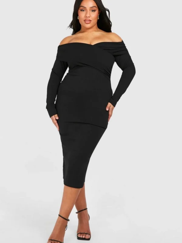 BOOHOO Plus Bandeau Bengaline Midi Dress