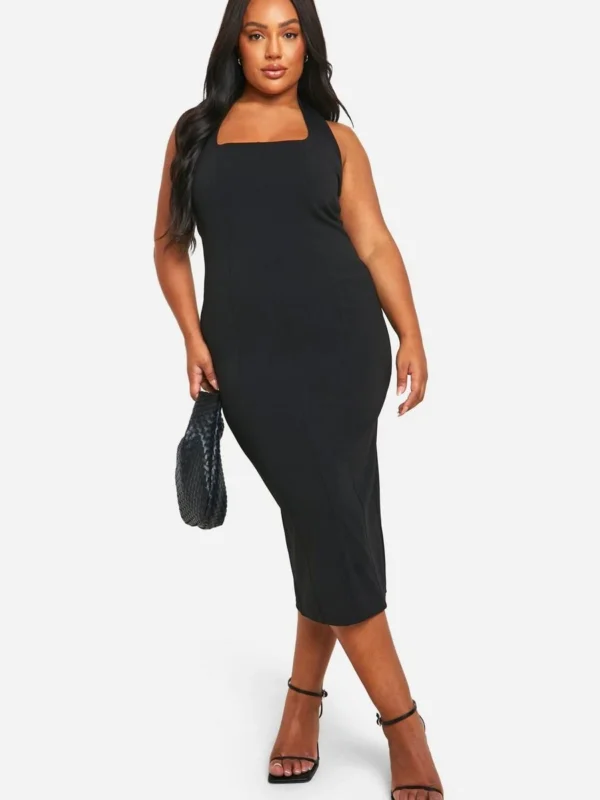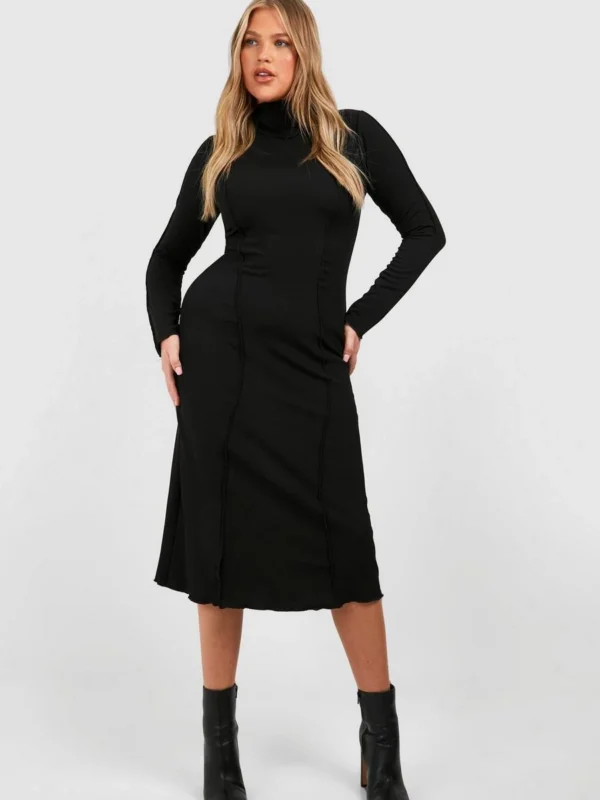 BOOHOO Plus High Neck Seam Detail Midi Dress