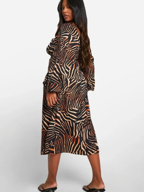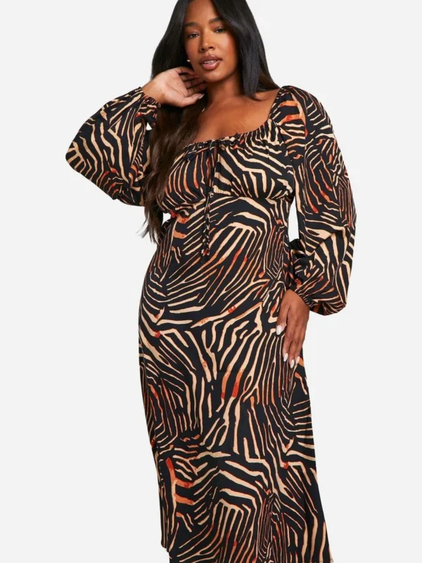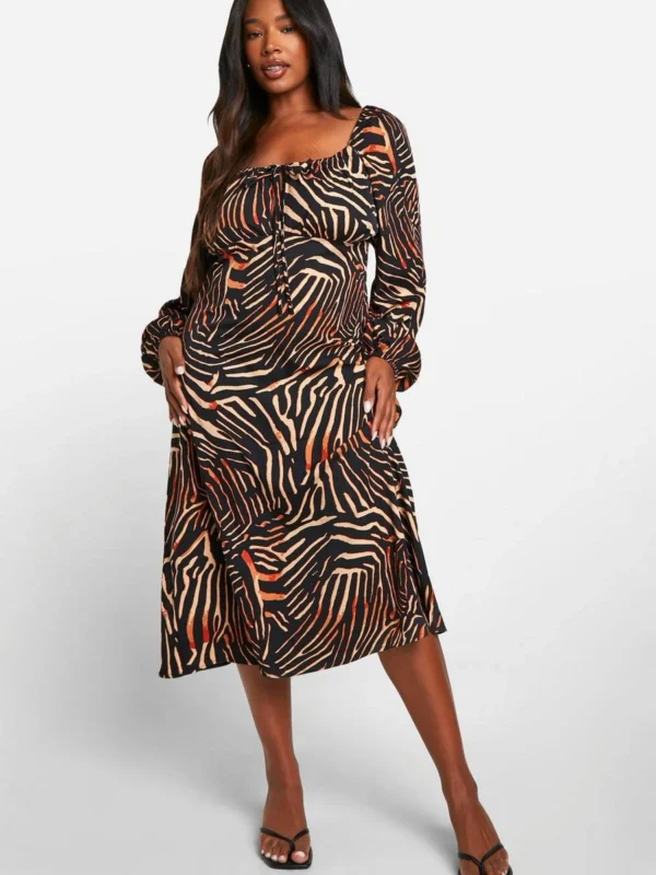 BOOHOO Plus Animal Print Ruched Bust Midi Dress