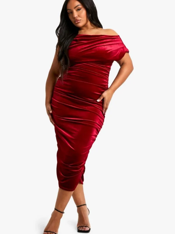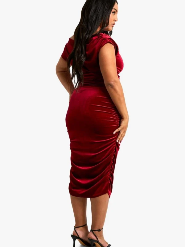 BOOHOO Plus Velvet Asymmetric Ruched Midi Dress