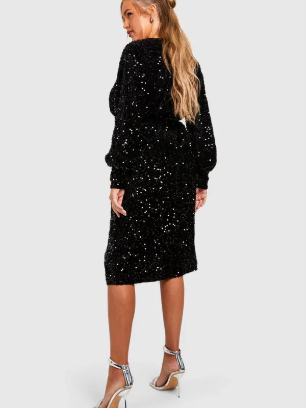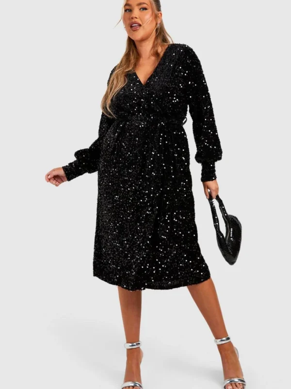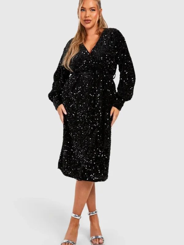 BOOHOO Plus Velvet Sequin Wrap Midi Dress