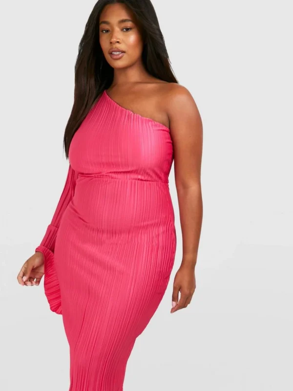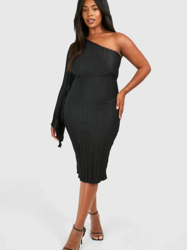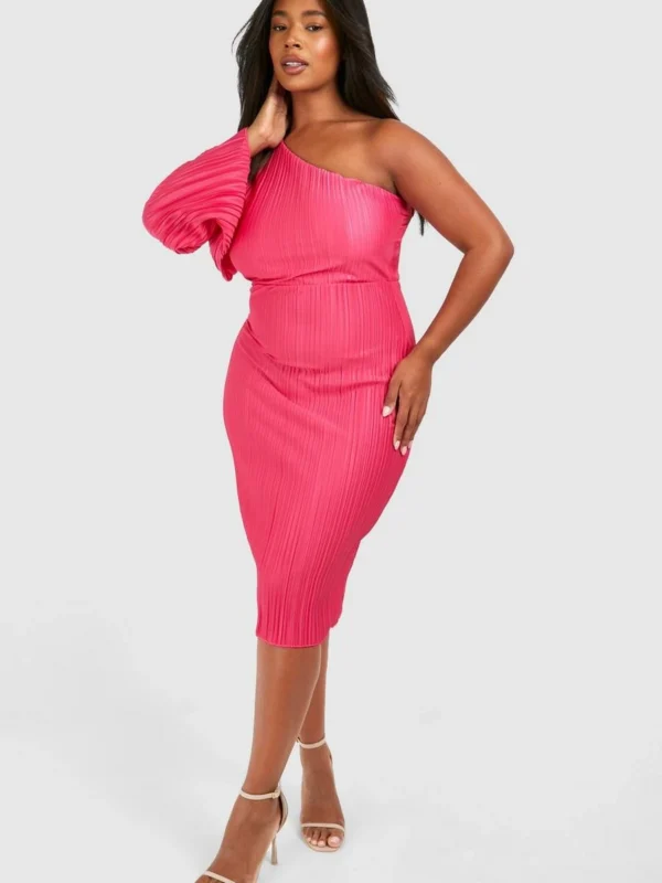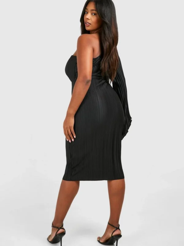 BOOHOO Plus Wide Plisse Cape Sleeve Detail Midi Column Dress