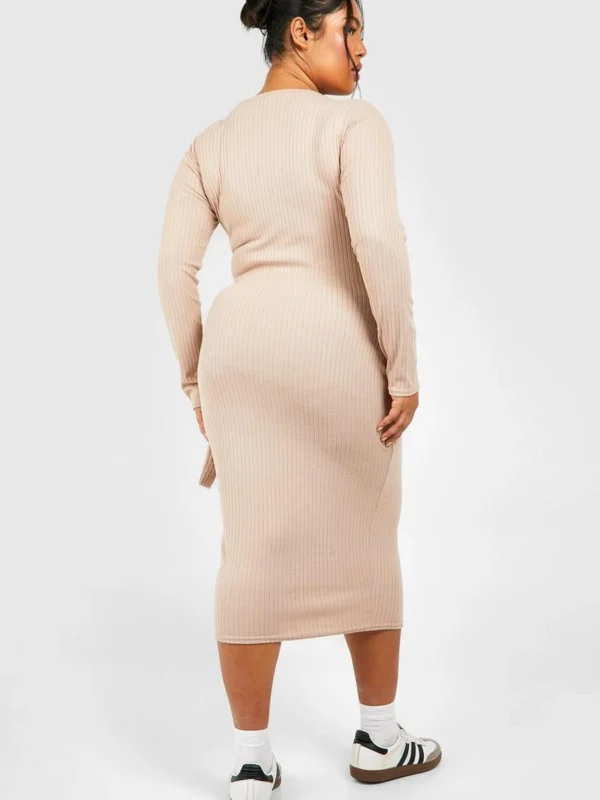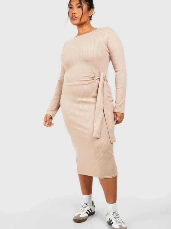 BOOHOO Plus Wide Rib Tie Midi Dress