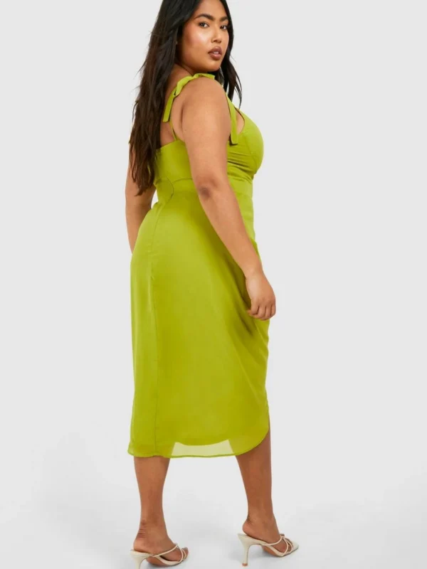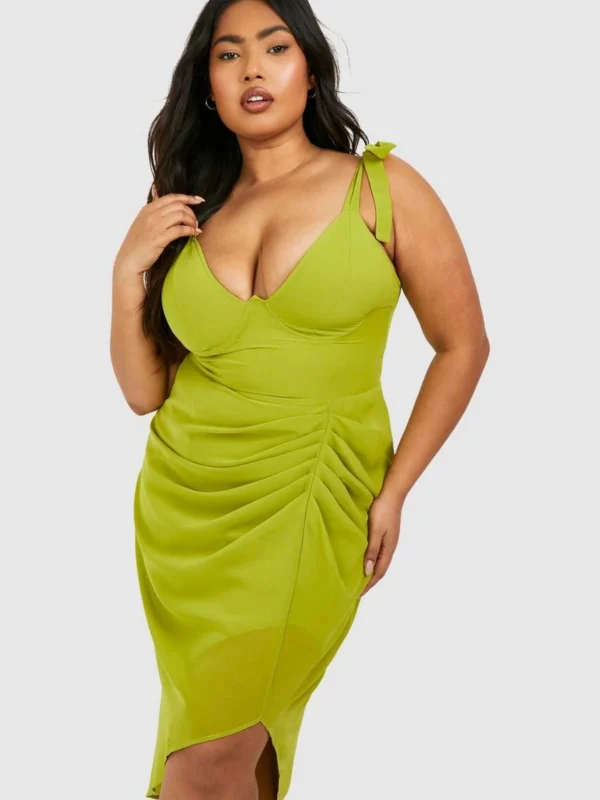 BOOHOO Plus Woven Corset Tie Shoulder Draped Midi Dress